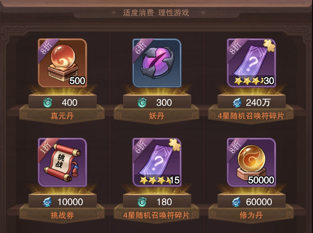 一.云游集市可用仙玉购买,每2小时给与刷新次数1次,可免费手动刷新5次,也可用仙玉进行刷新。推荐优先购买打折高的比如修为丹、真元丹、魂器精华,前期这些道具都是比较紧缺的。挑战卷是前期必须购买的,不管是土豪还是低氪金玩家,因为可以增加挑战次数,获得排名奖励,性价比比较高,其次就是土豪玩家可以买打折碎片,合成基础异兽做为狗粮,而像妖丹、兽骨、当归、武器精华等属于如果钱多就买些,钱少就放弃,毕竟通过关卡和其他活动也可以慢慢积累。总结就是土豪,缺啥买啥,仙玉20刷新一次,尽量都刷新完次数。月卡党推荐,优先购买1折的挑战卷,3折的培养资源,其次就是5-6折的道具,7-8折不考虑,可根据情况刷新几次,购买道具。最少5次吧。毕竟资源来的快,折扣力度很大低氪玩家推荐:灵石购买为主,其次就是打折力度大的。超过5折的不考虑购买。