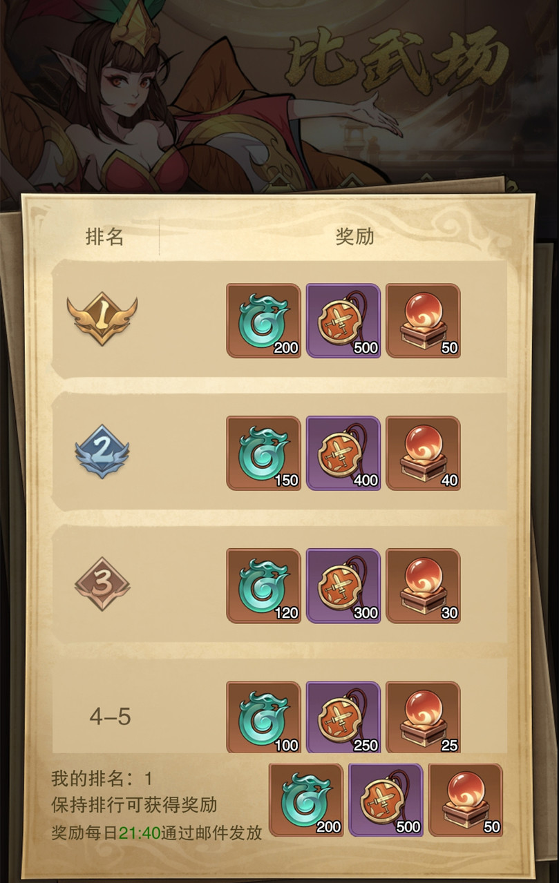 三.比武集市比武圣地是比武积分唯一来源。2天自动刷新1次(目前测试区是这样显示的,正式区大概率是7天或者30天)竞技场玩法需注意以下几点: