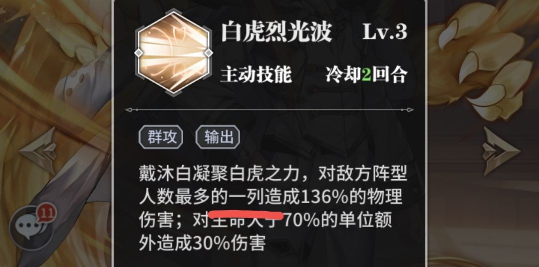 3、戴沐白:戴沐白的攻击机制和余龙相似,分别是一列目标和群体消耗,非常有利于先手消耗配合余龙收割。