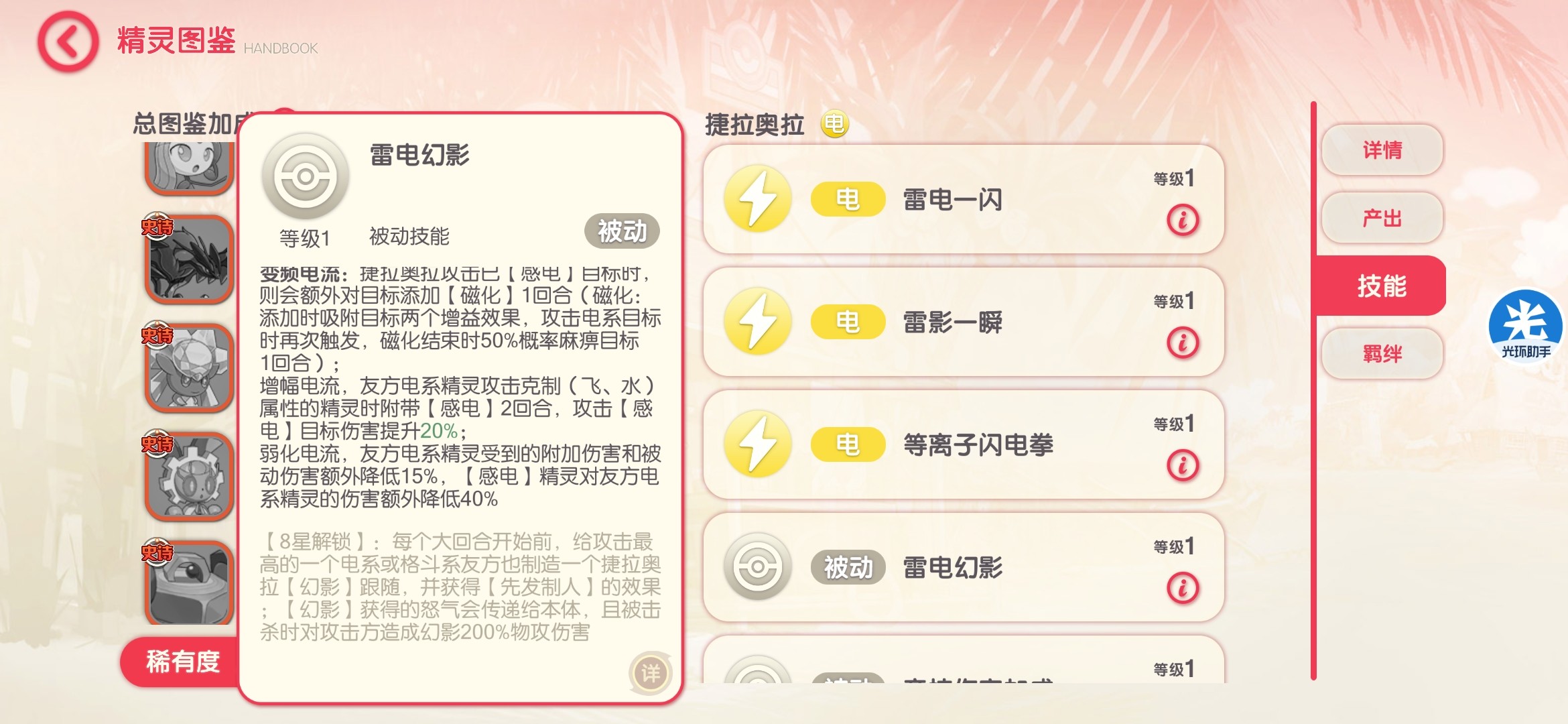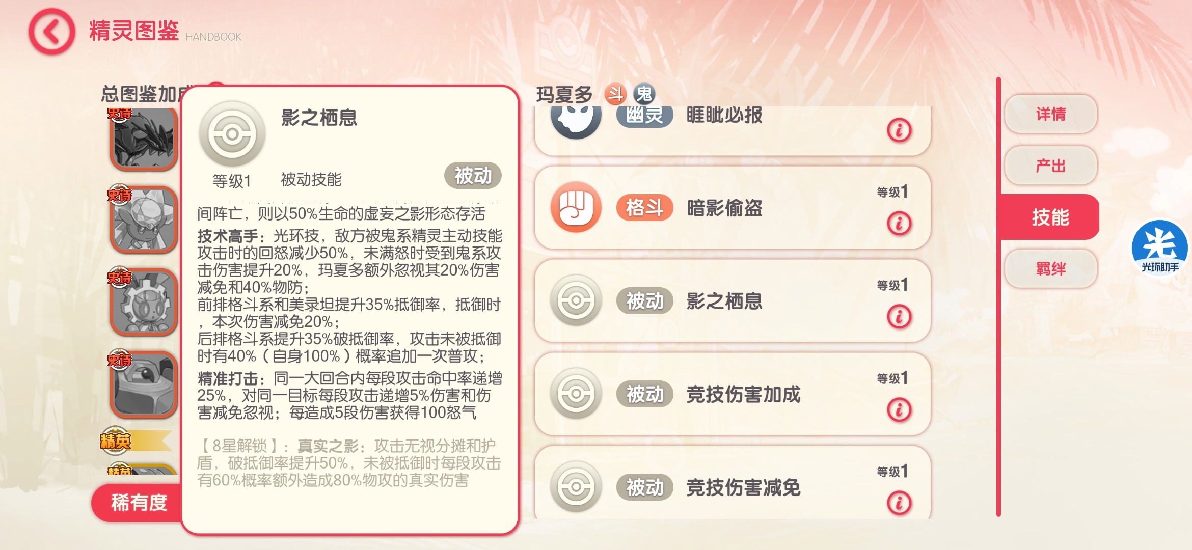 8星被动:为攻击最高的斗或电系队友提供每个大回合的幻影并拥有先发制人效果。