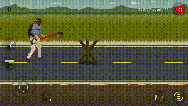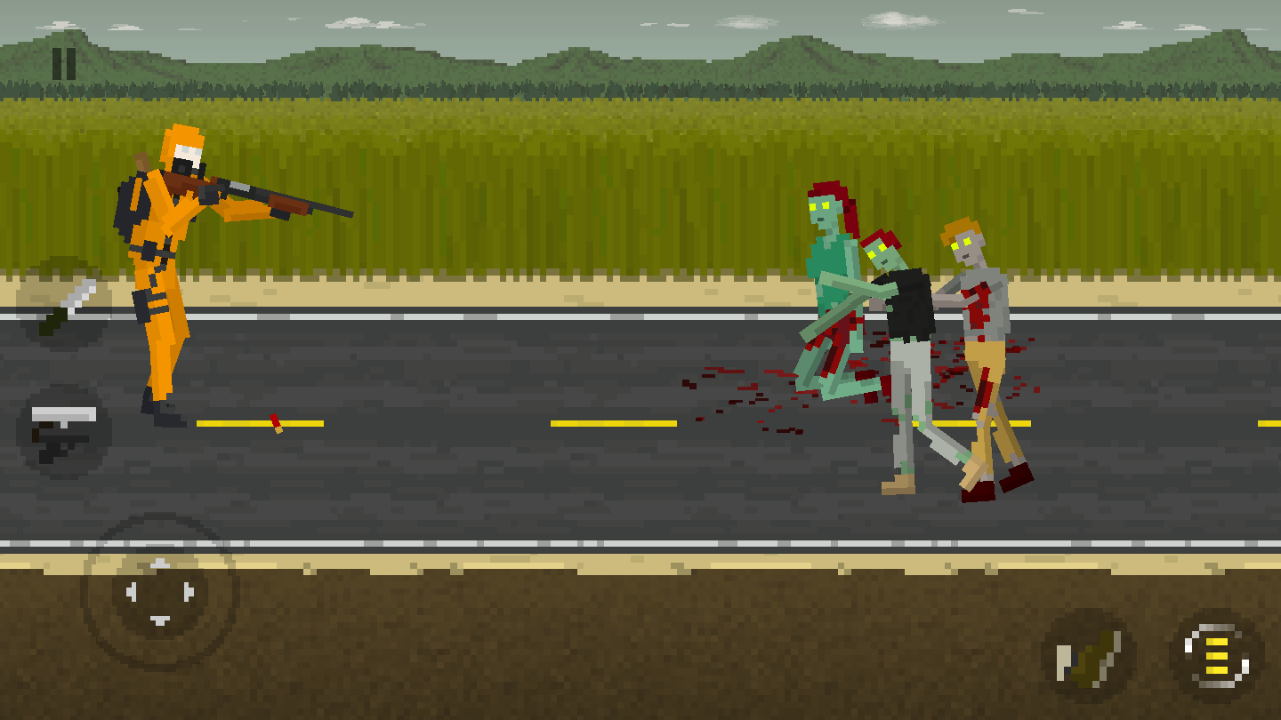 《僵尸射击与防御》简单的横版卷轴射击游戏,但因为马赛克的画风及简单的火柴骨架人物模型而变得十分魔性。