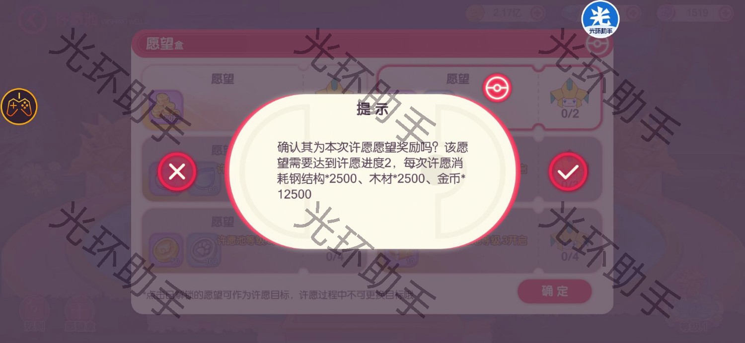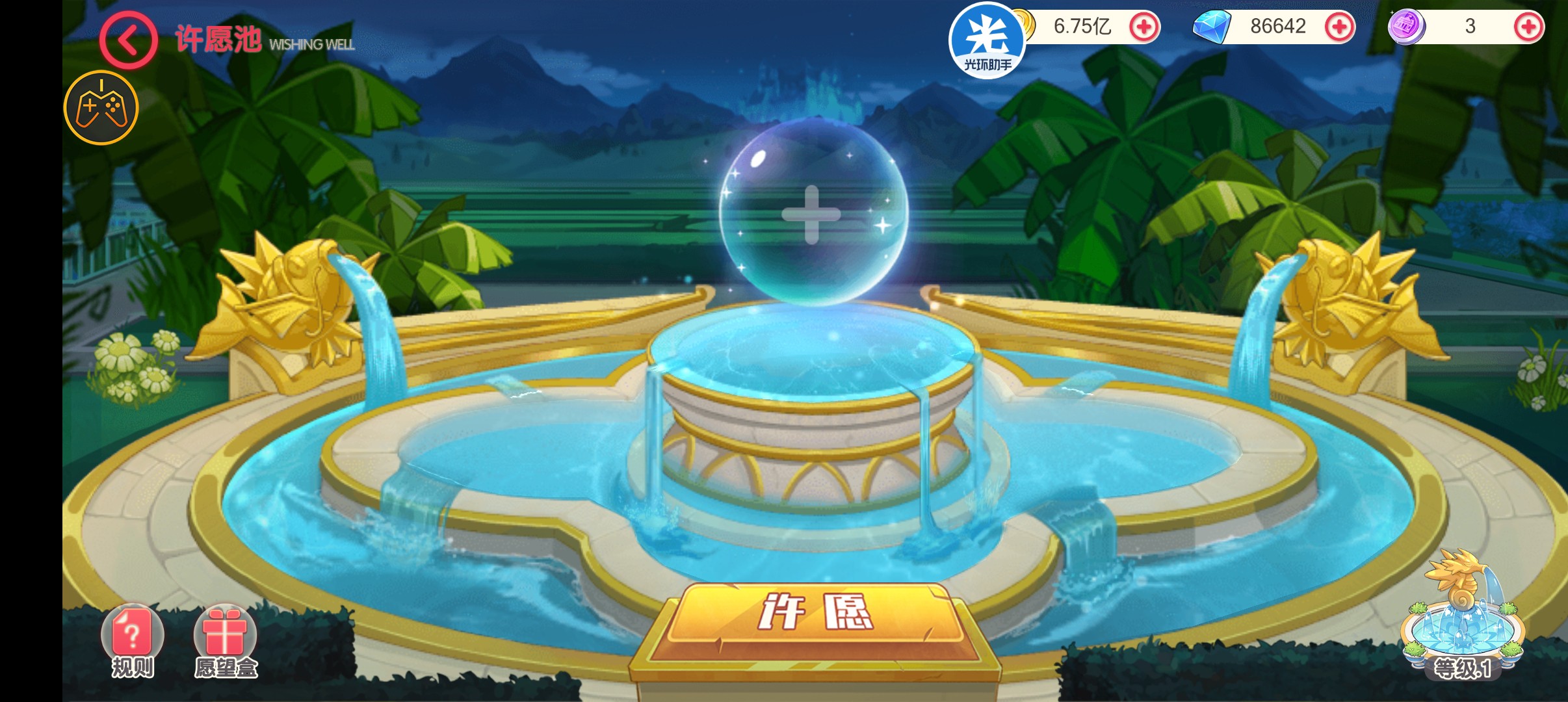 1、点击愿望盒,或者界面中的气泡+按钮可以打开愿望奖励盒,从中选择一个愿望。