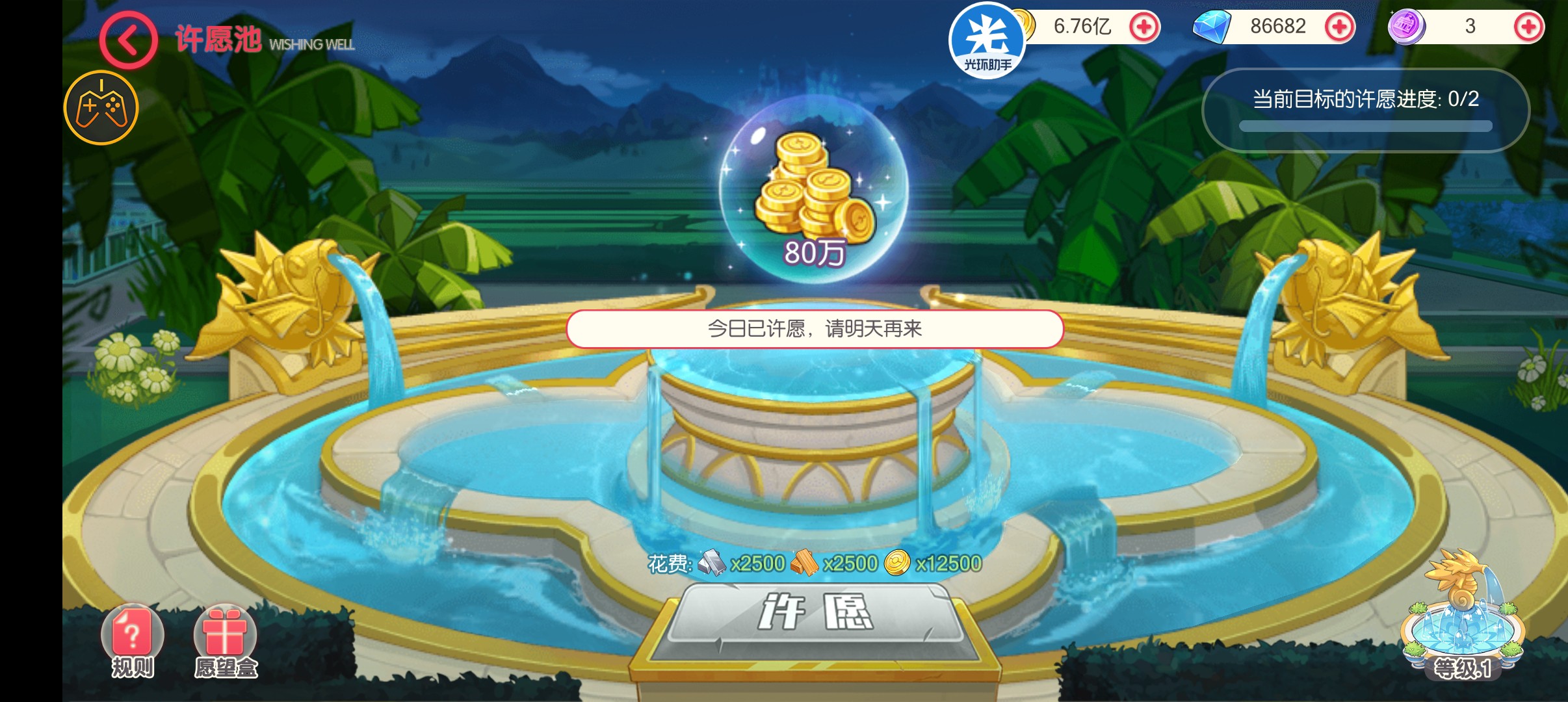 2、每日在许愿池进行许愿,许愿需要耗费一些道具,不同的愿望耗费的道具不同