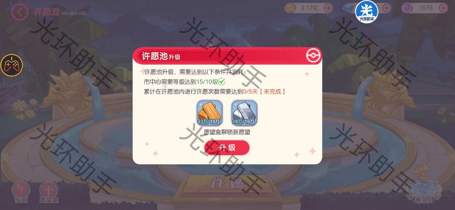 5、许愿池需要升级,道具材料准备充足后可来此升级建筑
