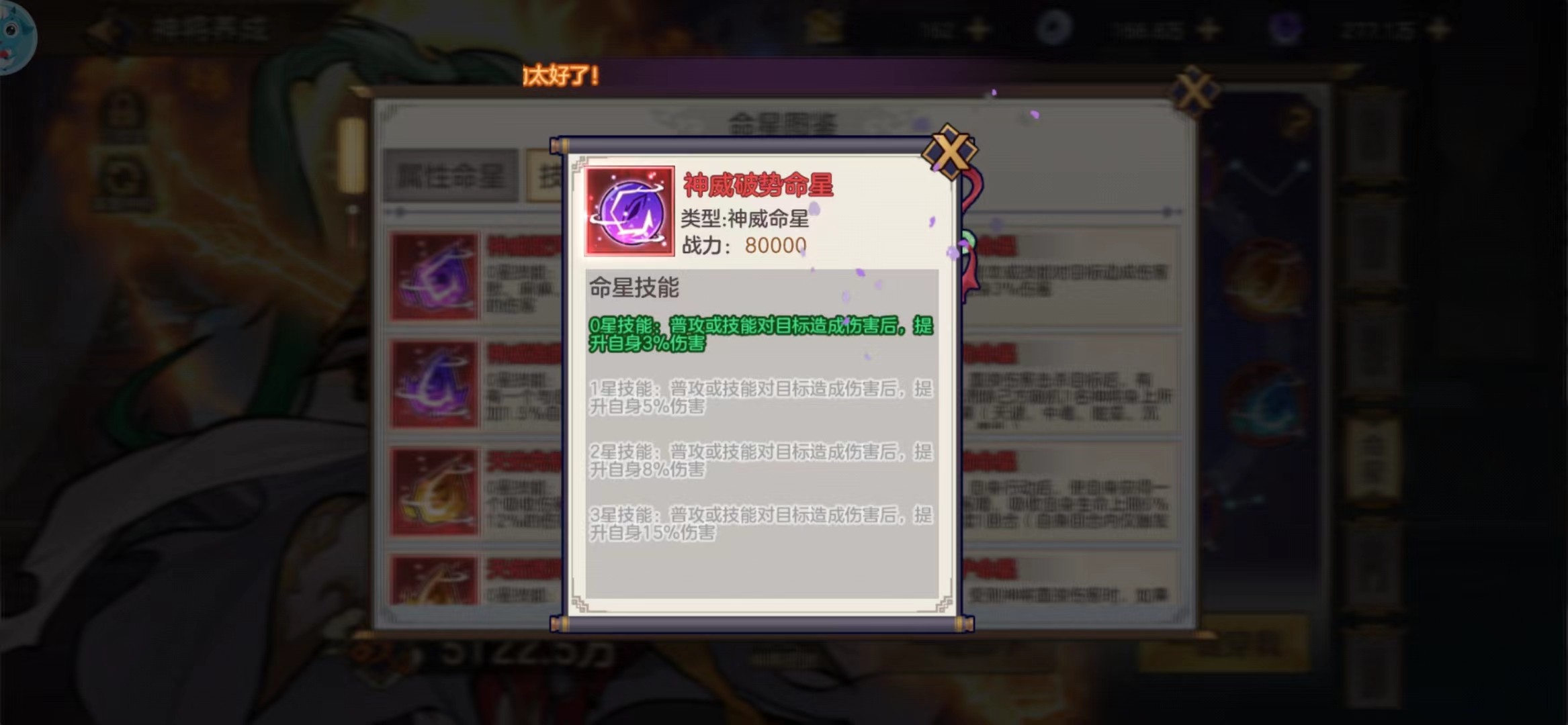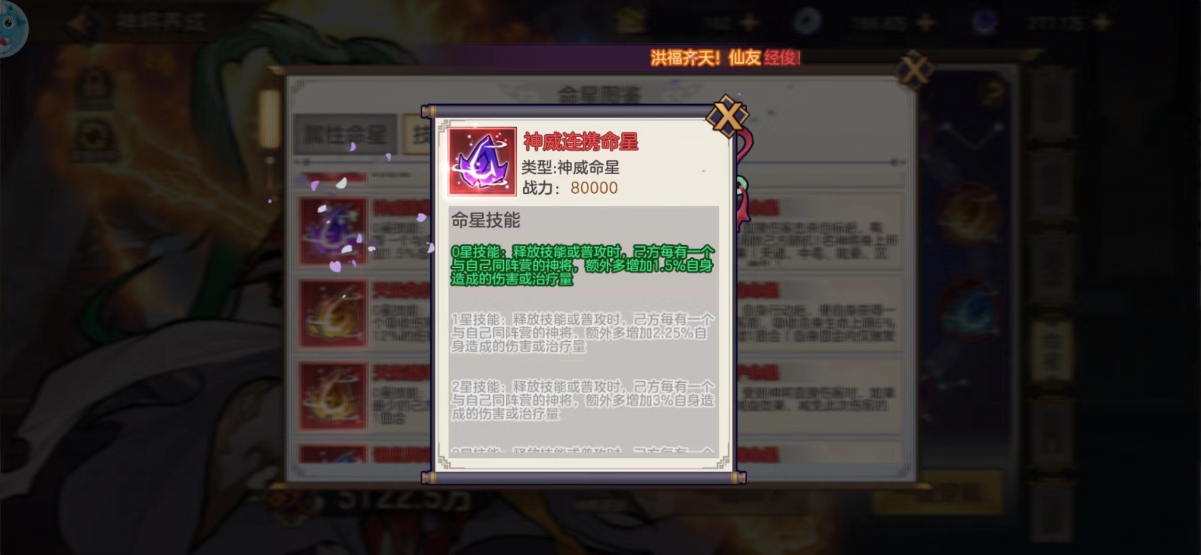 在这边特别说下纯天庭和混搭天庭,一个用的是神威破势,一个是神威连携。这2个可千万不要搞错了。