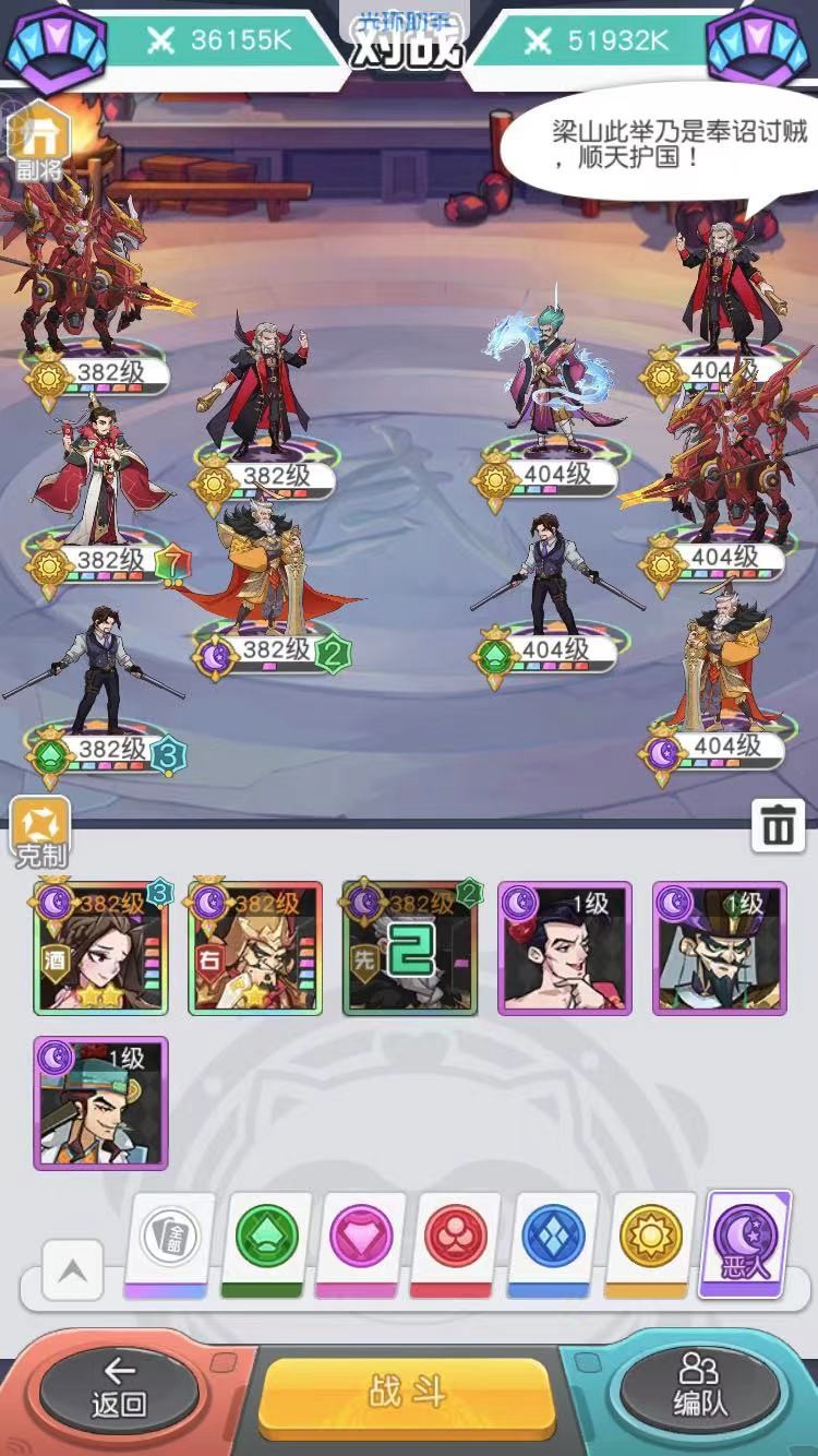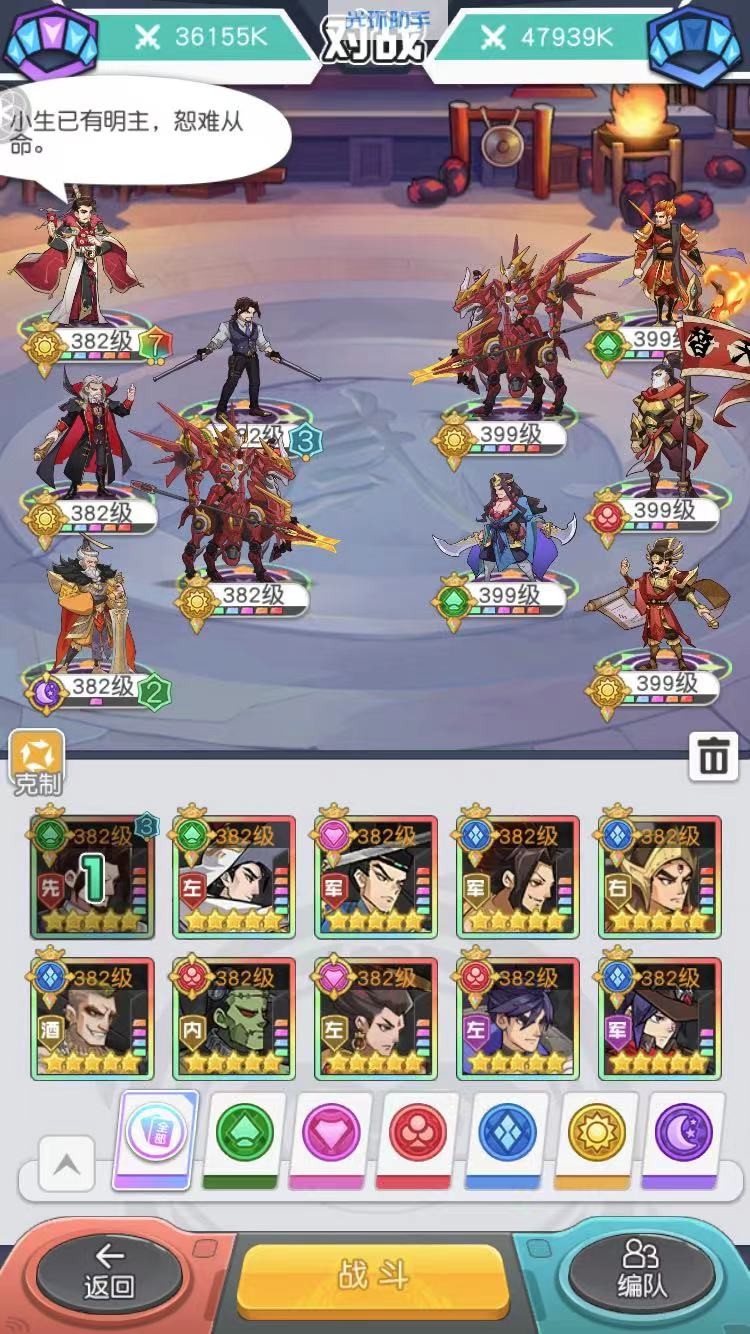 跨战力轻松取胜,因为对面是远程输出,所以我们可以大胆些不带奶妈,换成输出缩短进攻时间,我选择用方腊的好帮手郝斯文,20秒内解决战斗。