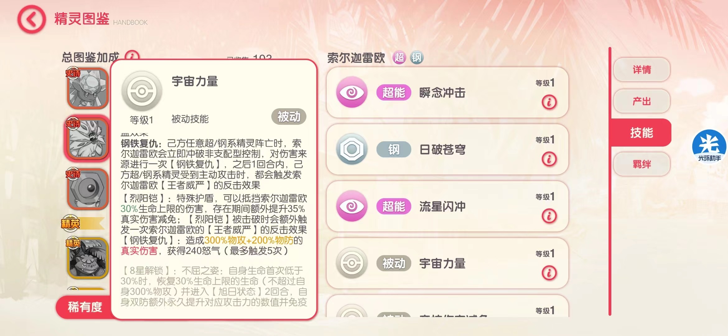 基础阵容是狮子、玛机雅娜、时拉比、X鹿以及两只刚系挂件,这套阵容适合平民玩家,资源有限,可以极限养一只狮子,依靠狮子的复仇机制及高额真伤来输出。这套阵容只需要狮子11星,其余都可以是4星,玛机雅娜有条件8星,没条件也无所谓。这样的阵容怕原固,哪怕11星狮子也打不动原始固拉多,但是其他阵容随便打。