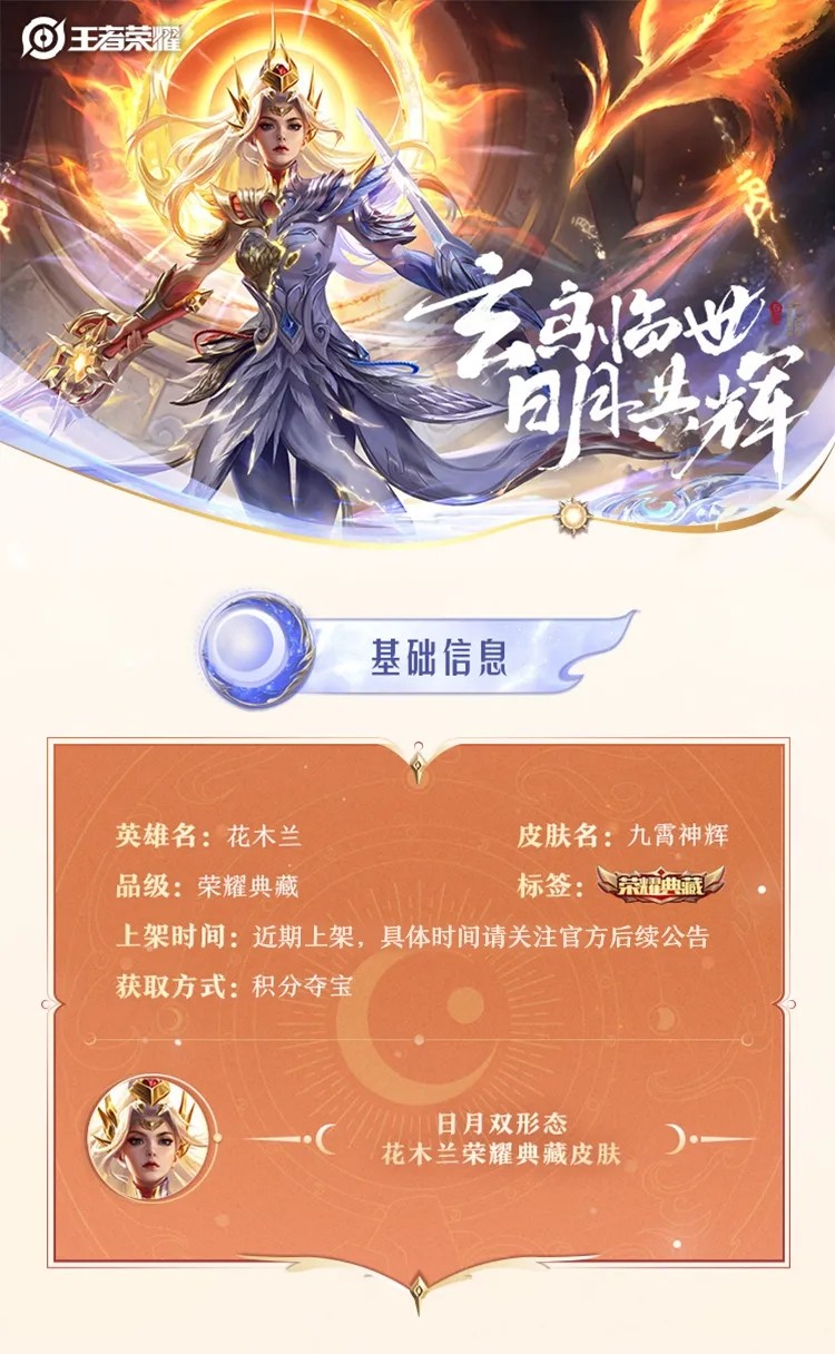 看完视频后,大家有没有被木兰姐姐帅到呢?新皮肤的详细资料来咯~日升月落,神辉降临!