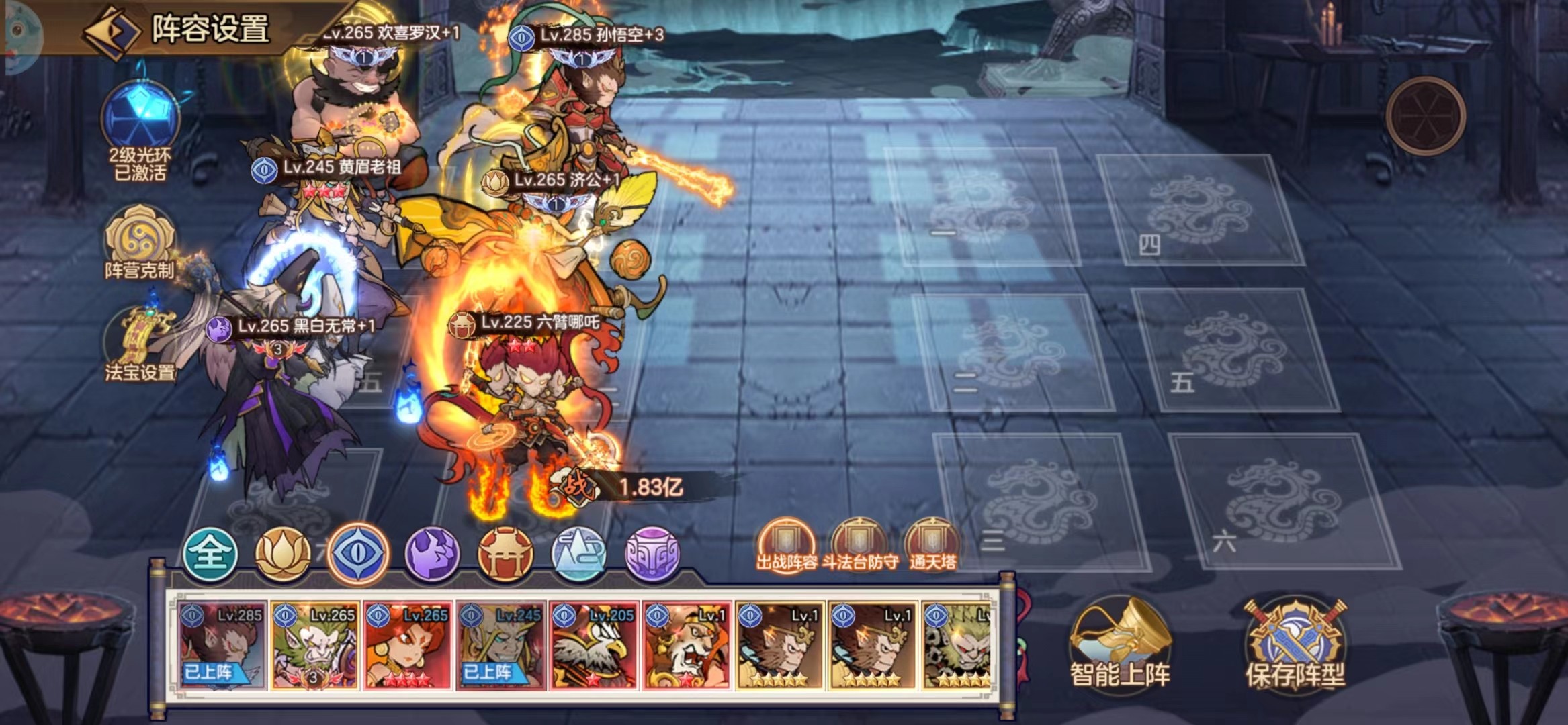 阵容搭配:六臂哪吒 猴子 黑白 济公 欢喜 黄眉老祖