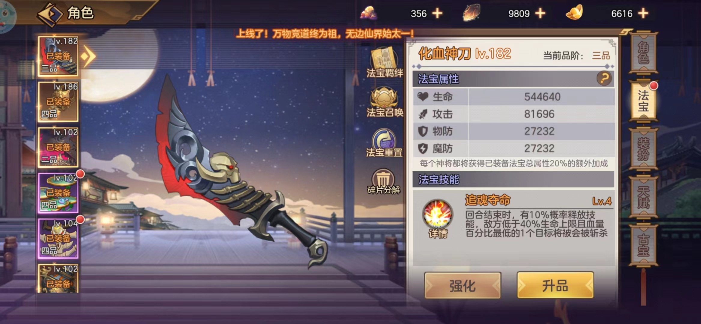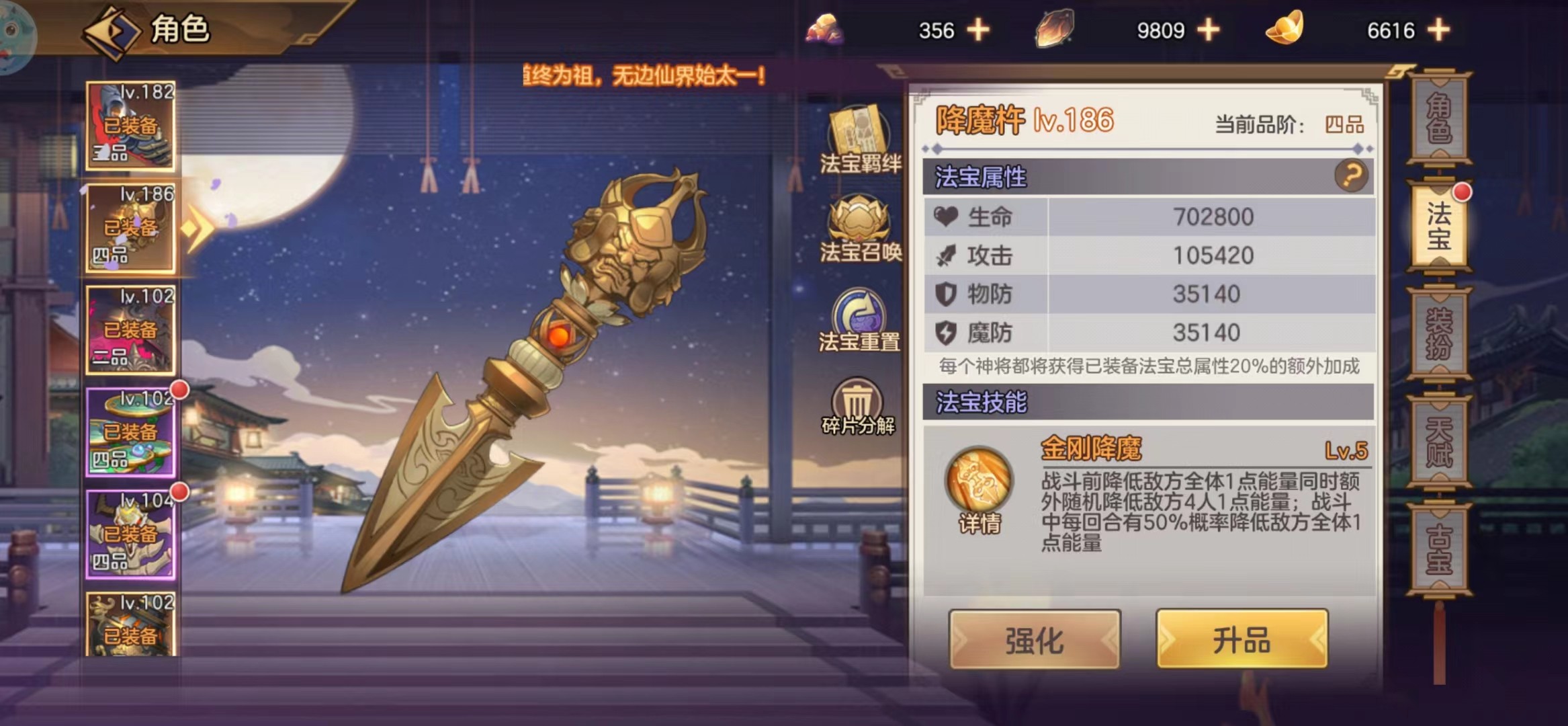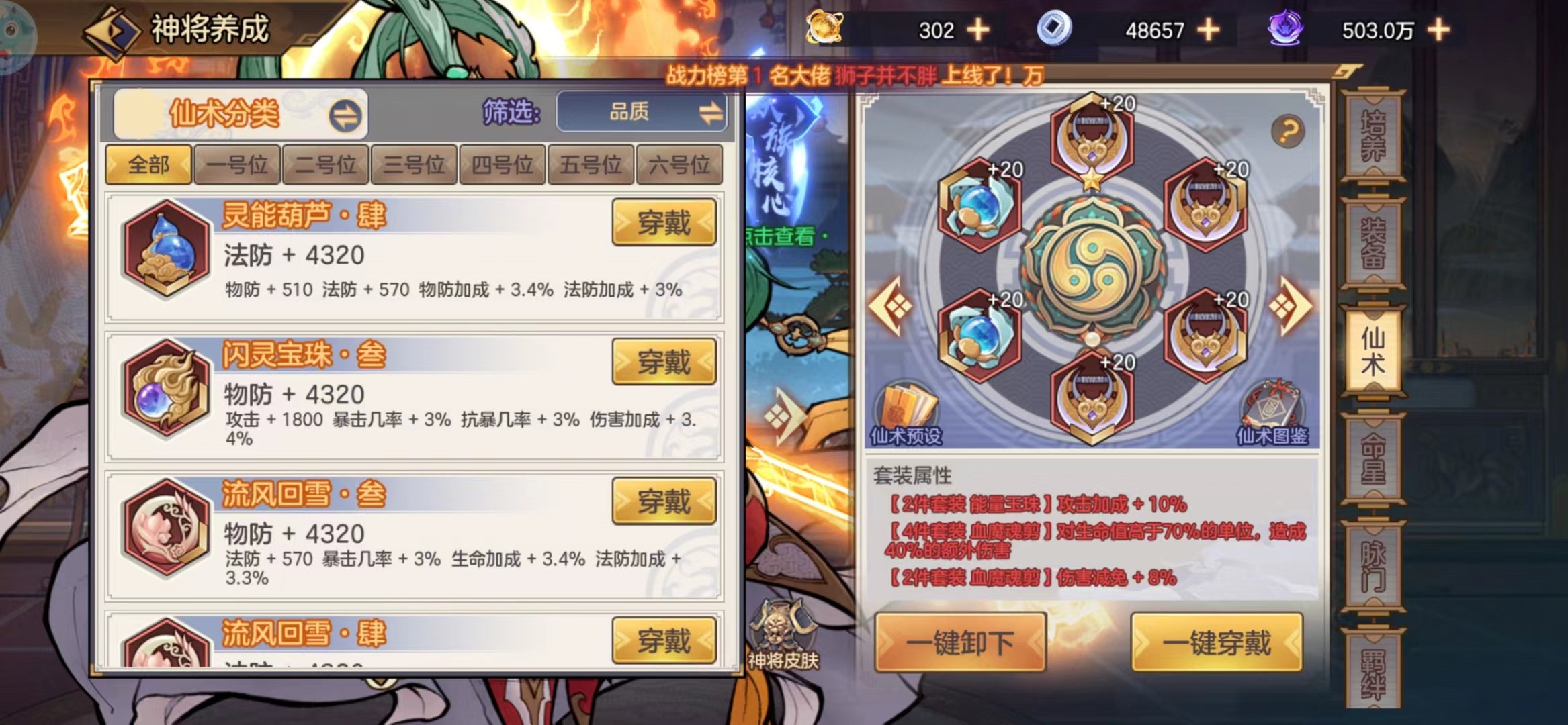 ★到了后期,全体刮痧的时候,法宝的重要性就体现出来了。豪不夸张的说,后期法宝打的伤害有可能是神将的十倍。