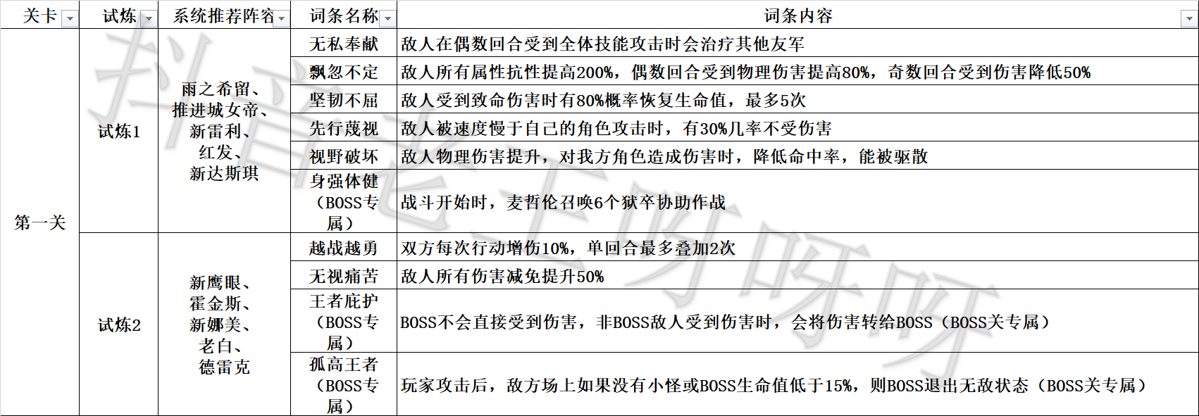 还是老规矩先看奖励和规则,奖励是按两周为一个周期刷新的,每个关卡选择5人,两个关卡的人不能重复,所以这里必须搭配好人物,具体人物后面老王再来说,奖励的话装备升级石头和重铸石是OK的,装备的话有堡垒、夜幕、糖果、处刑、红骨,这里都是任选的哈,大家可以慢慢凑齐一套的。