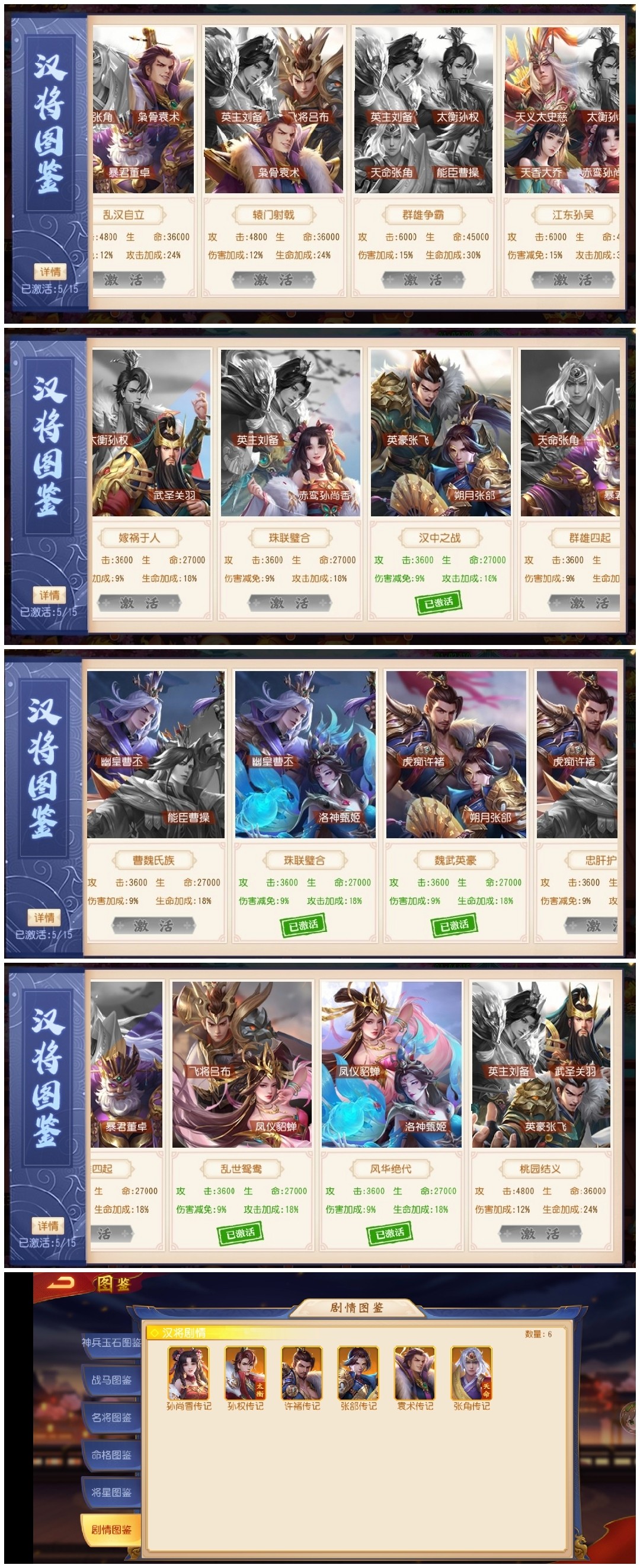 此外还有一个剧情图鉴,之前参加汉将活动的时候会经常看到这个故事剧情动画,估计是重温汉将背景故事来的。