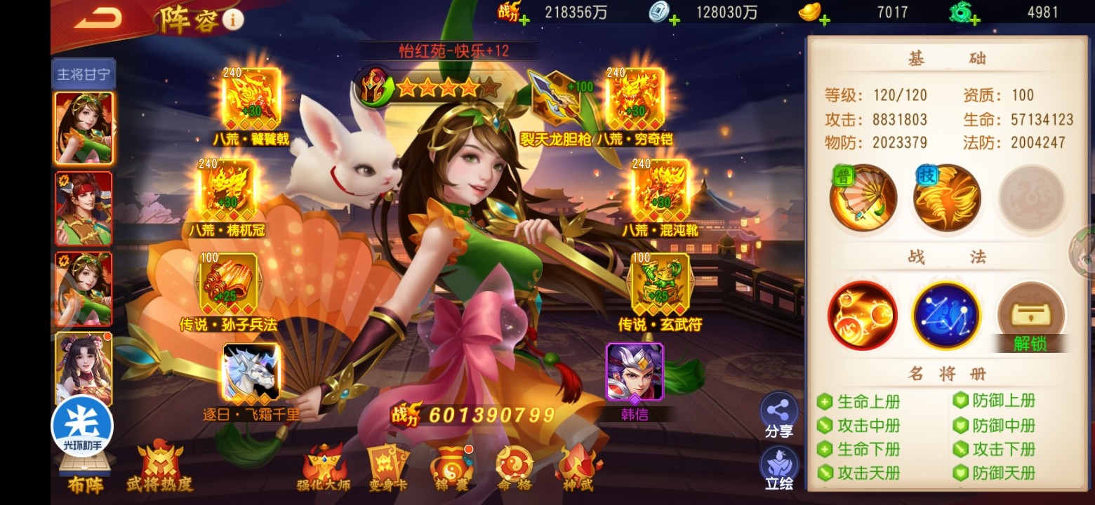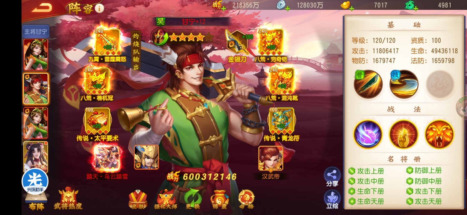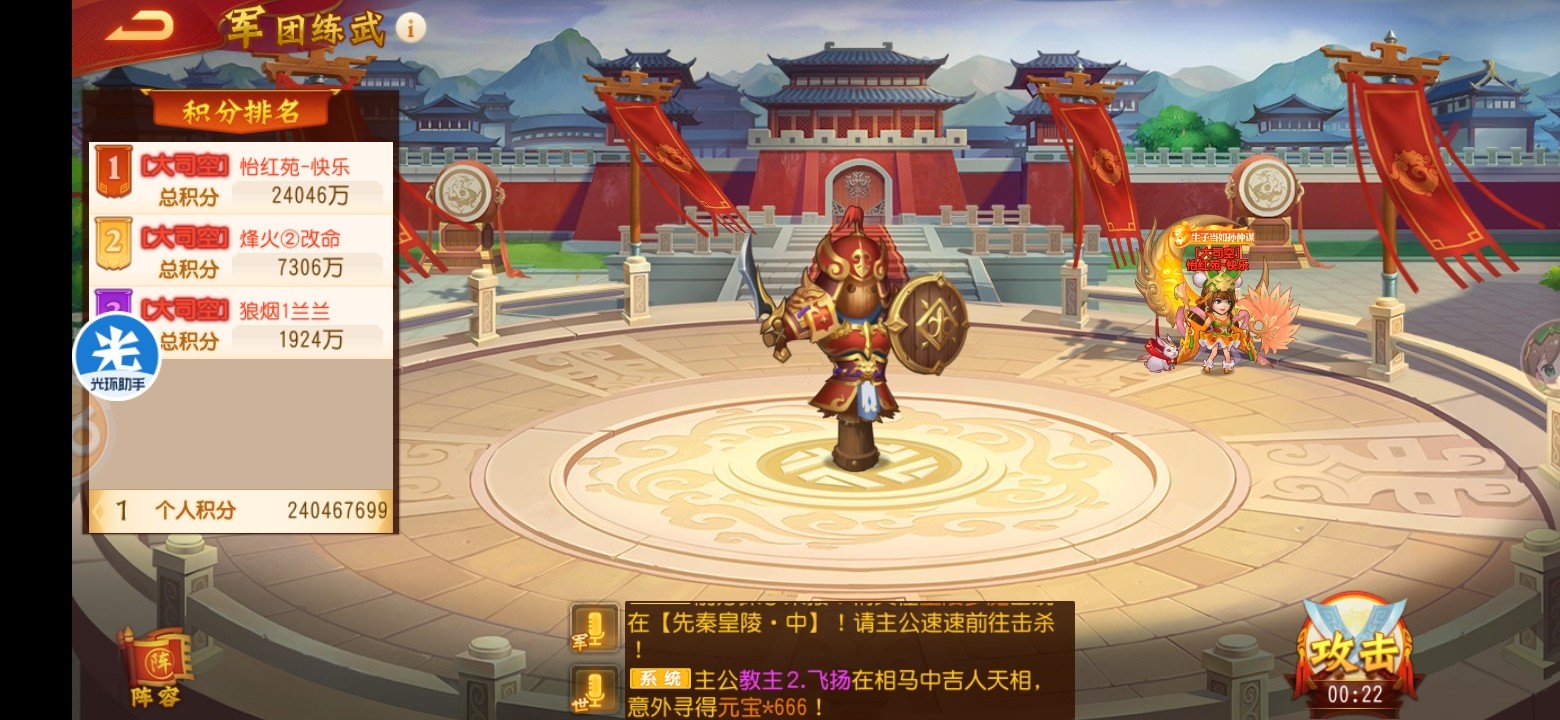 pk切搓方面,没有太多去研究打架阵容,还是常规的靠甘宁单将碰运气,在第一回合不被关羽刮到伤害的情况下,只要能出手,可以有机率越战5亿。