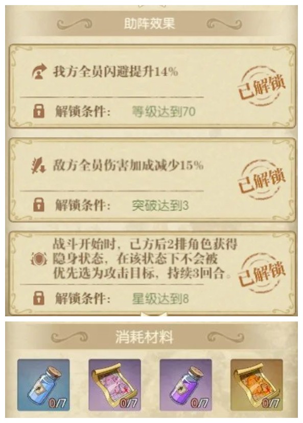 助阵效果与突破材料:海图与瓶子 4突材料来源终极挑战