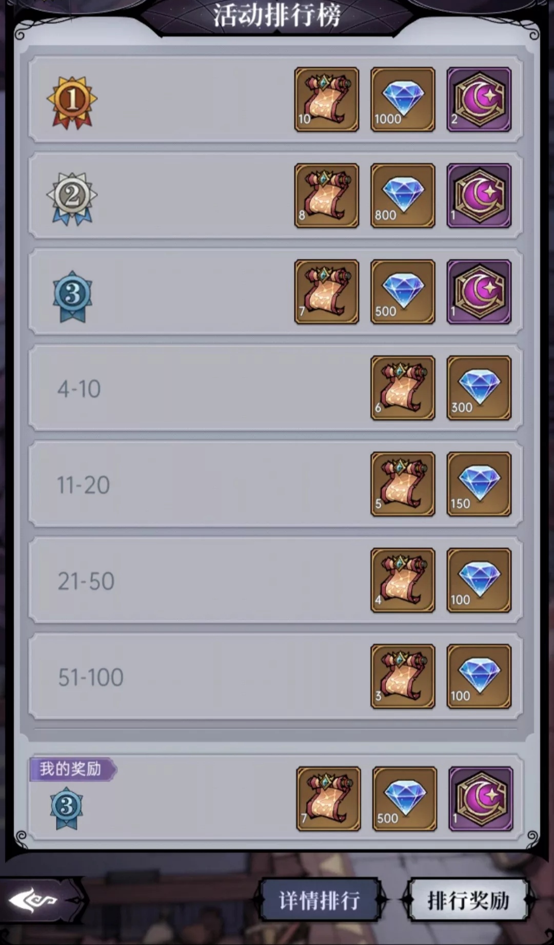 在活动期间,每日有2次免费快速冒险+6次快速冒险的购买,如果钻石紧张的玩家可以不用拉满,不争排名;如果有能拿好名次的机会一定要次数拉满,获取更多的资源,同时也可搭配升级特权