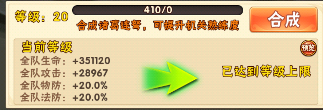 ③基础属性培养:满转职有12w攻击数值+23%攻击百分比加成;武阁第一排攻击有30%攻击百分比加成;机关匣中满木牛牛马有20%攻击加成;将灵培养,群蜀物攻吴魏法攻攻击培养;藏经阁铭文魂阵达到一定等级有攻击加成