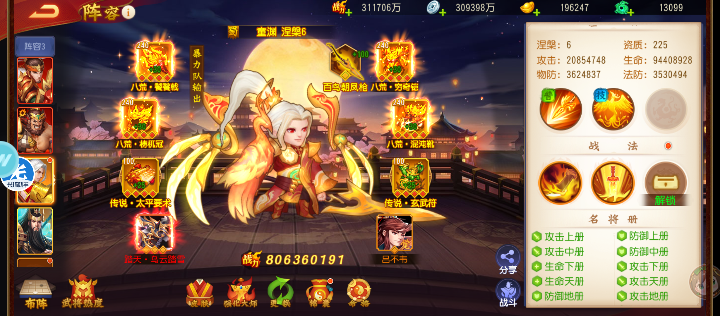 童渊有金破吗?有的话这个阵容可以玩到20亿,只是输出差点意思,打城和跨服boss没什么贡献😄