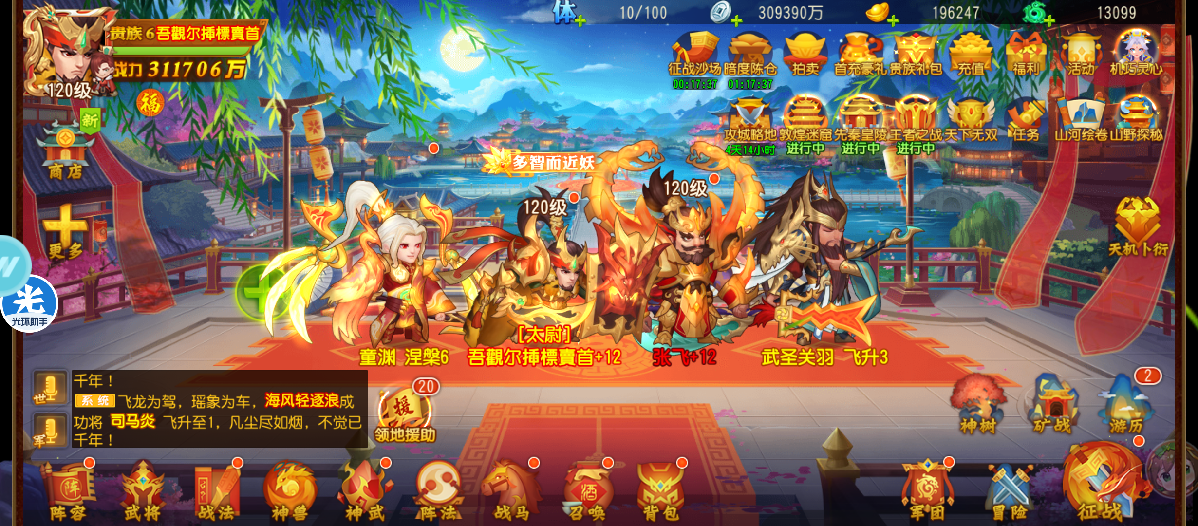 有条件可以玩主角变童渊,卫阶保留,貂蝉换成许褚。3将如果到大后期玩不下去了,可以上个大乔。这样生存能力就上来了,不至于被满将后发碾压
