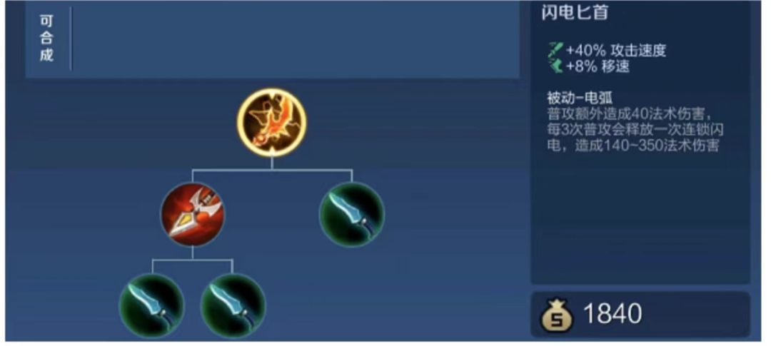 首先我们来看看其属性,其一是增加40%的攻击速度,其二增加8%的移动速度,而被动是有种效果的,第一种是普攻三次之后能释放一种造成130到350的法伤到闪电(连锁),第二种是普攻能额外造成40多法伤。