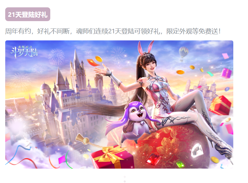 接着是一个基础的21天累积登录获得奖励的活动,其中有说到连续登录21天即可领取限定外观等资源,请问这个限定外观有没有可能是指之前提到的海神岛主城皮肤呢?如果是的话我必须给官方点一个大大的赞!