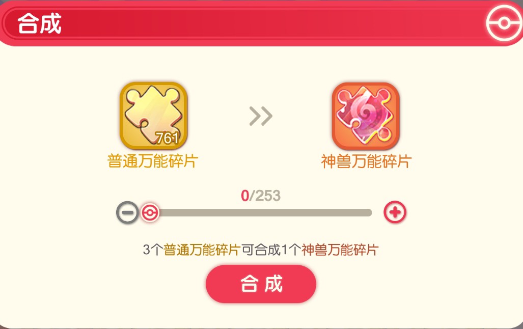 三个普通万能碎片。是可以合成一个神兽万能碎片的,也就是我们平常说的红碎。