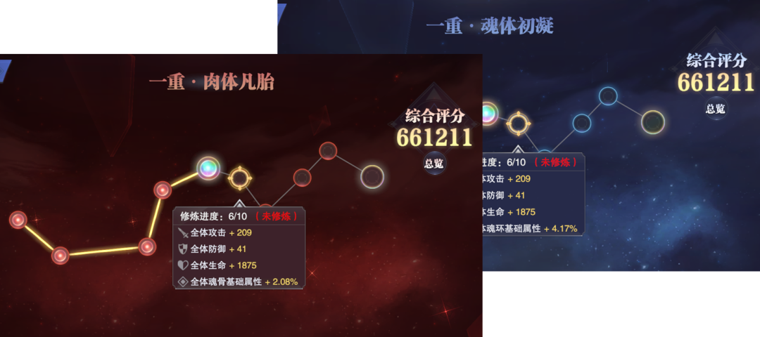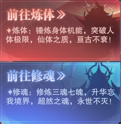 接着大家进入到这个分页中便可以看到修魂和炼体的各自分页,其中这两条分支有以下这些特点需要我们注意: