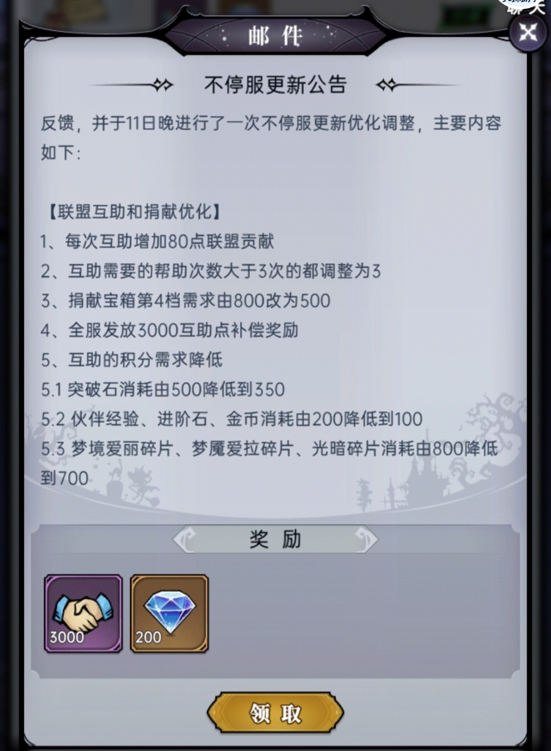 3.互助道具的选择依据联盟等级划定(以前是根据 自身等级)