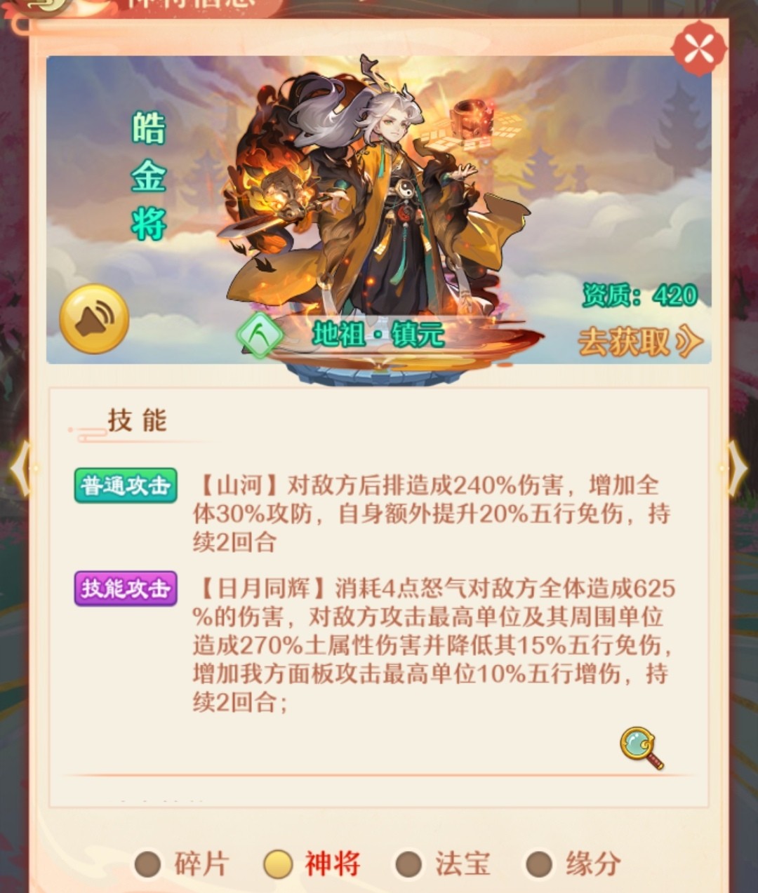消耗4点法宝能量,释放法宝技能,不同于人仙两族,不是全体土伤,是金伤。