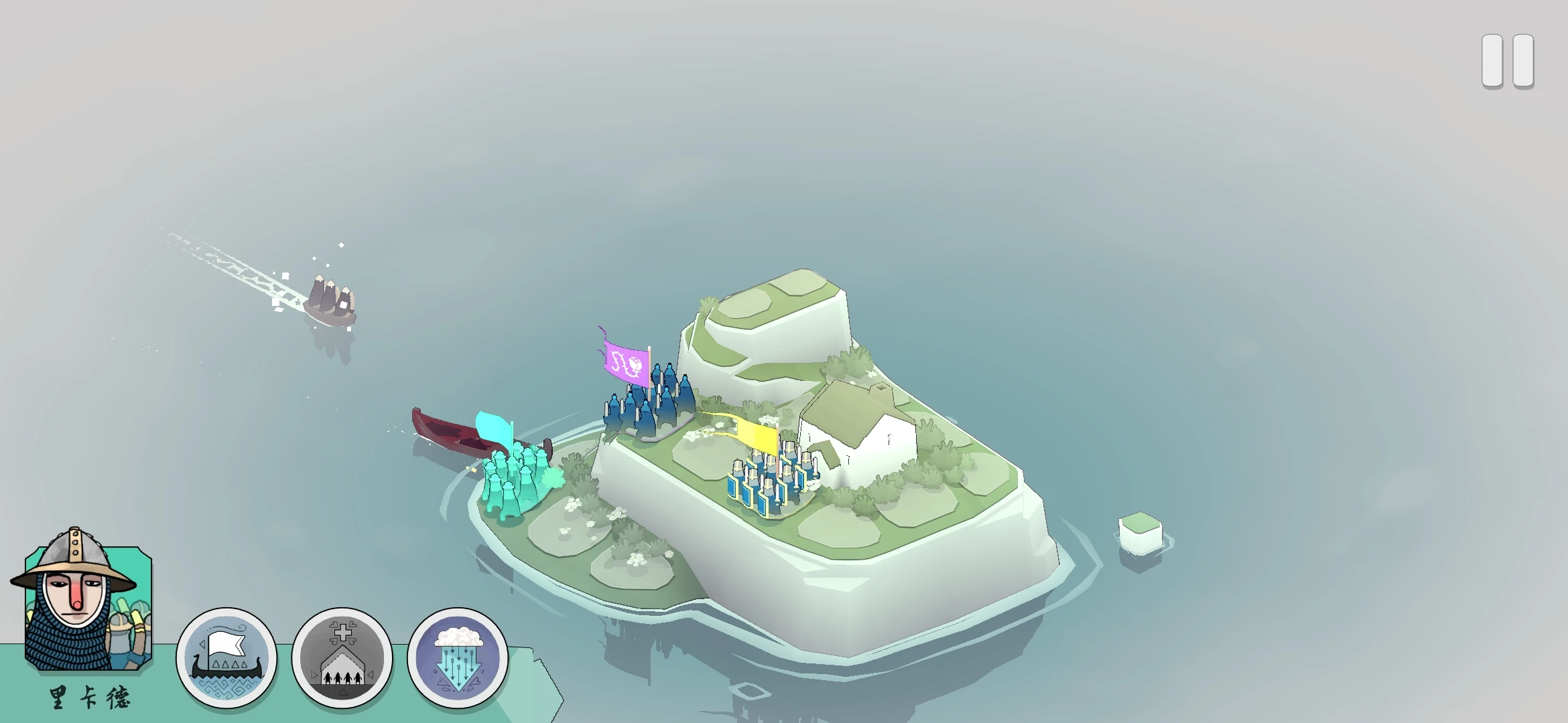 本作以北欧战争作为背景,玩家将操控守卫军与维京海盗进行战斗。进入游戏的第一印象,就是画风与其他游戏的区别非常大,扁平而轻量化的美术风格非常“小清新”,玩起来很清爽,美术表现堪称同类作品的顶峰。