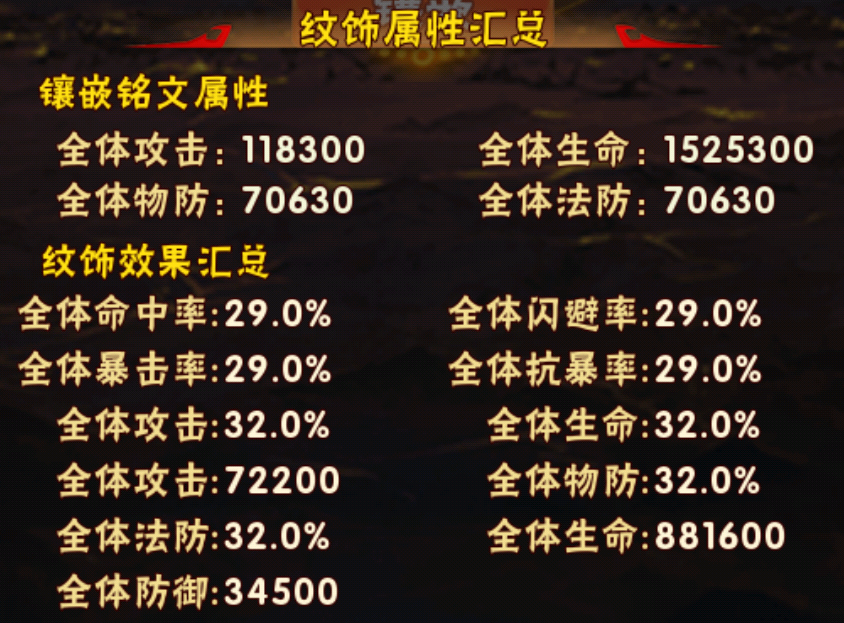 【培养养成】铭文鸢。发布于 2020-04-23关注铭文【87级】前期镶嵌按照推荐双倍属性,主要是纹饰合成较难纹饰碎片获取途径:①天下–仙尊试炼【87级】②通天试炼:100层以后金色铭文碎片③少三之路【登顶】:完整金色纹饰④军团活跃商店:橙色纹饰(应急)一个满铭文需要2000熔铸盘+24相同铭文;后续全部镶嵌满以后可以慢慢变成攻击铭文满双倍推荐铭文加成