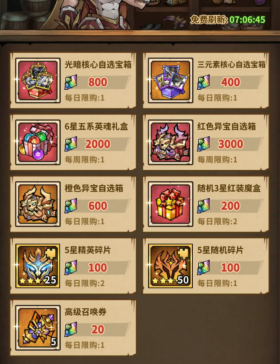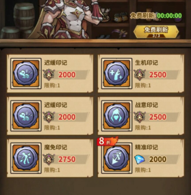 优先购买:打折,钻石可购买的,每8个小时获取1次次数,每天可免费获得3次刷新机会