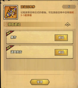 道具类,这类我们可以简单理解为,获取英雄,强化英雄材料,比如普通召唤卷、高级召唤卷、普通探宝卷、共鸣精华、迷失魂晶等