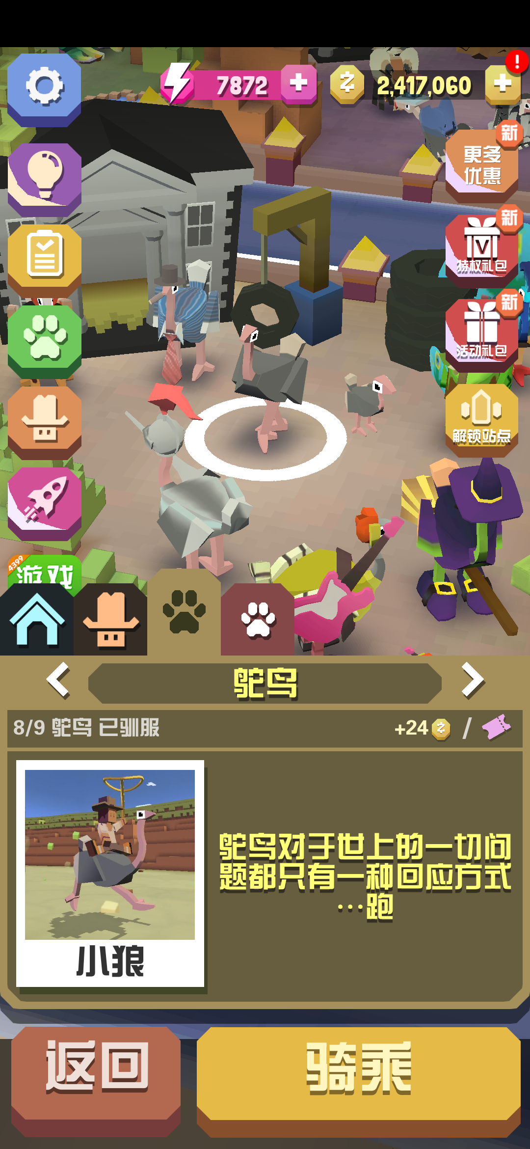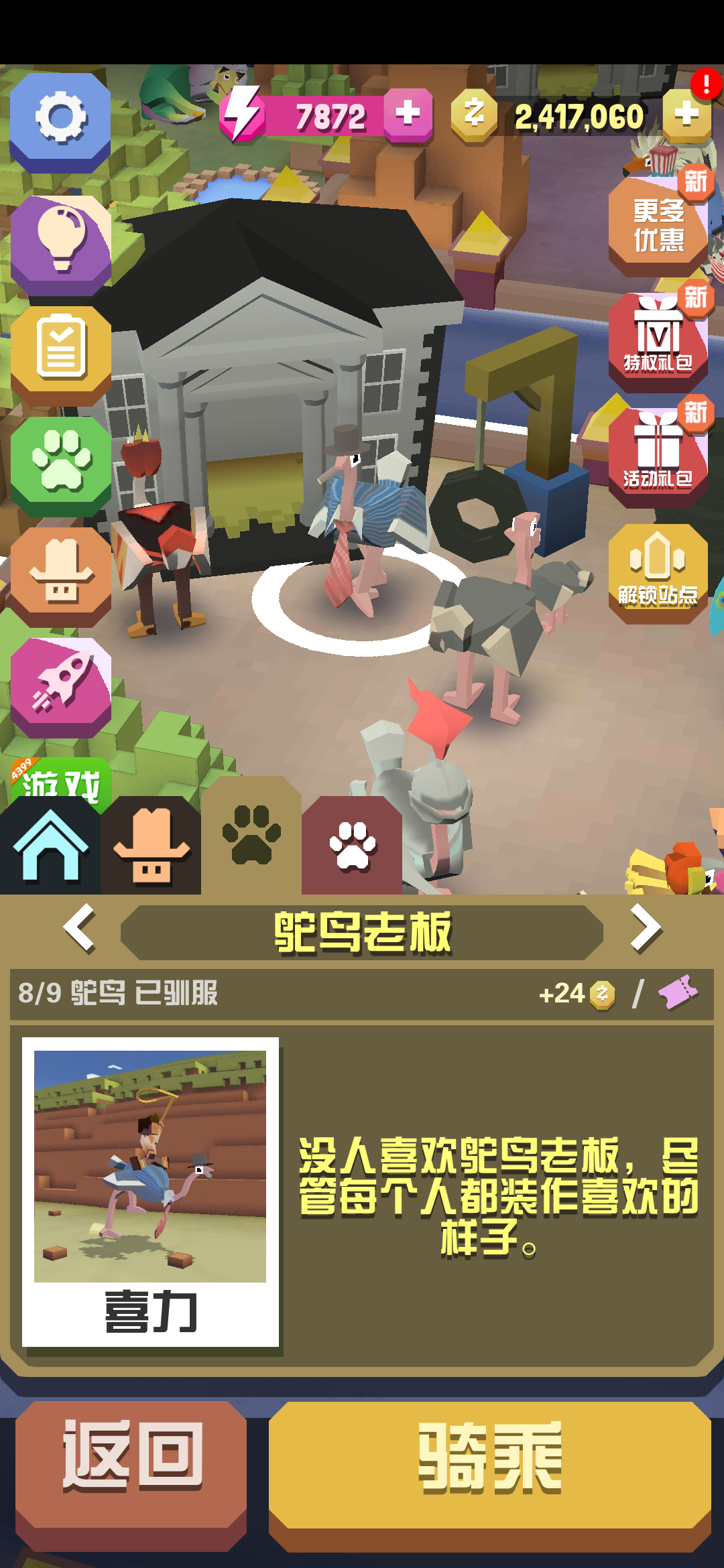 以上就是疯狂动物园九只鸵鸟的获取方法的总体介绍,希望对其他玩家的能有所帮助。