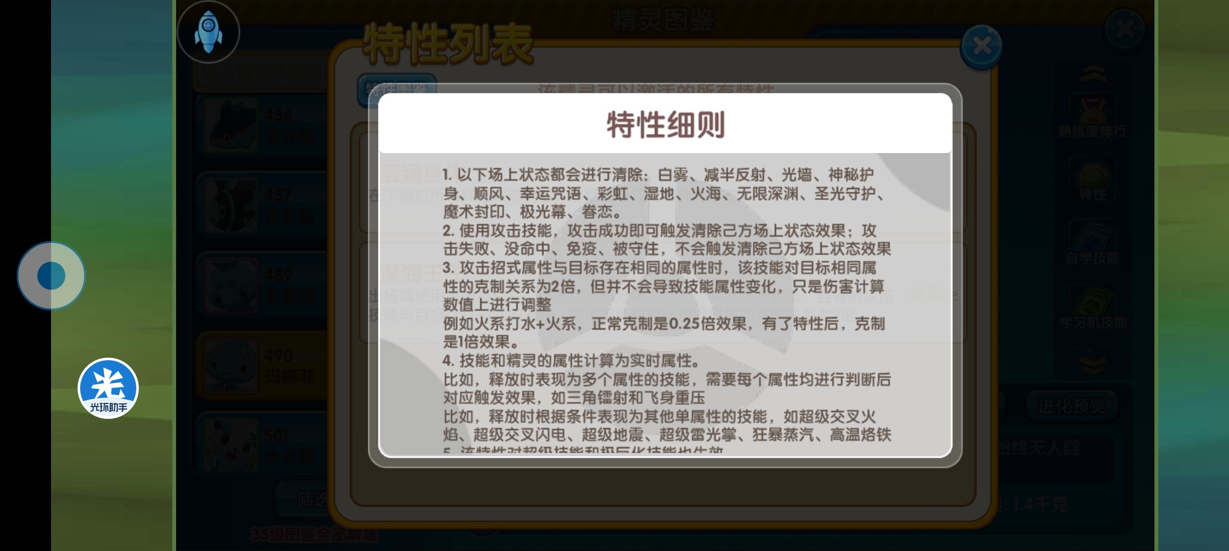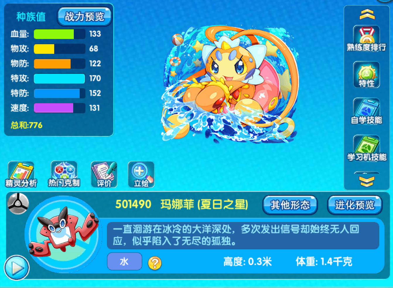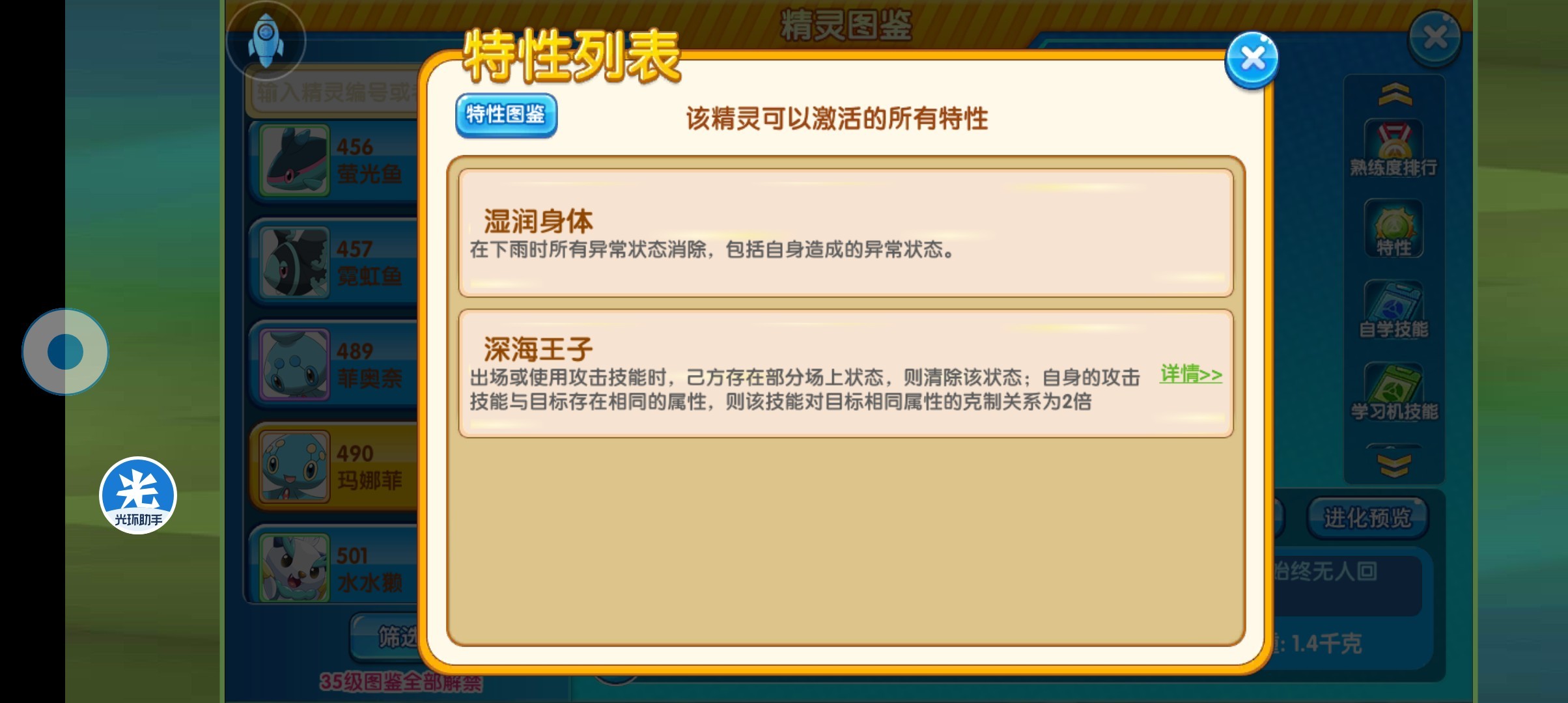 就比如说对方是一个海皇牙,我方玛娜菲使用水属性招式对对方海皇牙造成的伤害是两倍,具体的大家也可以看上方的特性细则。