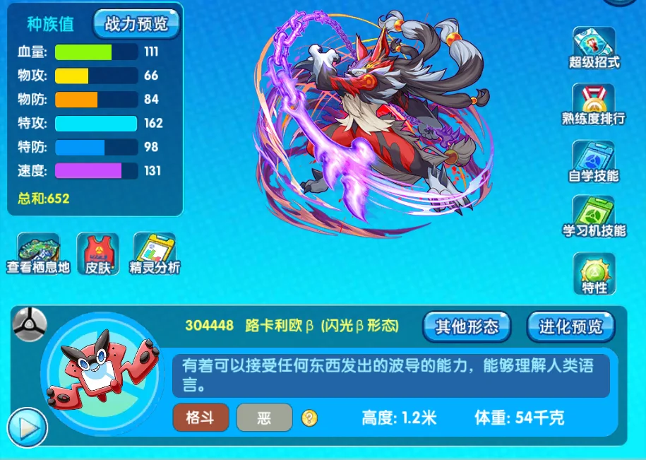 总结分析:路卡利欧这个形态,说实话吧,本来是走物攻路线的,但是由于越发生了一点点的小变故,就改成了特攻,基本上让专属得到了用处,但是在回血方面失去了很大的优势,就是灭气掌和吸收拳,所以说现在的路卡利欧是一个比较中规中矩的精灵,不算是太强,也不算是太弱,说白了,这只宠物就是用来针对噩梦神的,别的也没有什么用处了