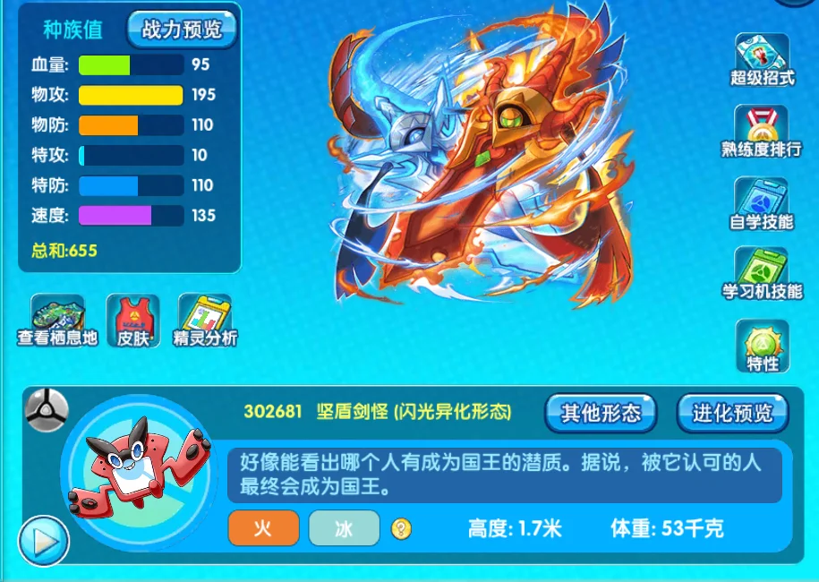 如果想要玩好这只宠物的话,是比较难的,但也是比较简单的,我之所以这么说,就是因为这只宠物想打输出,是要比其他的宠物更加的强化快,因为本身防御型态下的双防可以达到190,完全可以先在防御形态下使用剑舞,等自身的强化能力达到一定的能力过后就可以转换形态进行输出了冰属性和火属性的打击面,基本上在目前来说还算是比较合适的