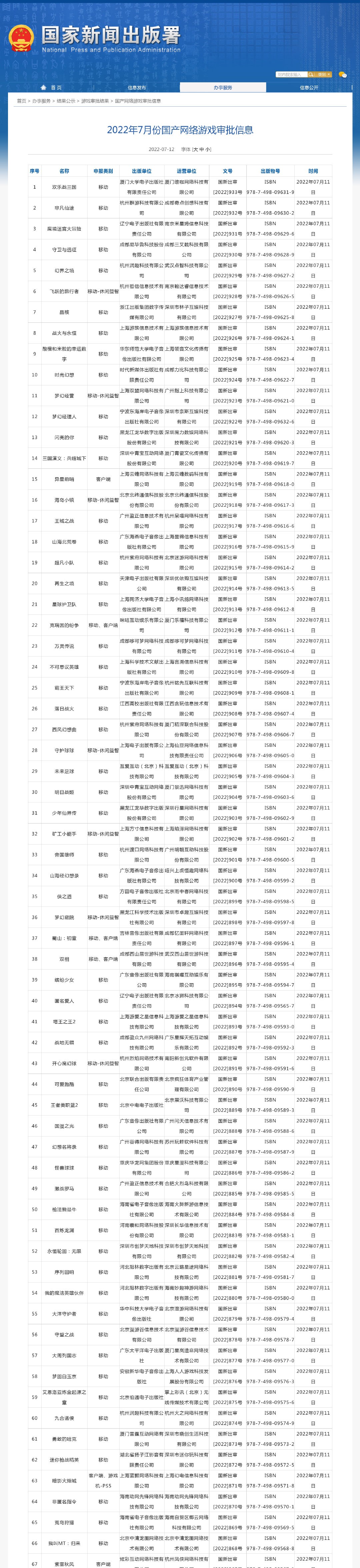 7月份国产网络游戏版号今日公布,共67款游戏,包括《暗影火炬城》等3款客户端游戏,以及《CoA(晶核)》、《勇敢的哈克(HAAK)》、《蜀山:初章》、《非匿名指令》、《永恒轮回:无限》、《双相》、《大周列国志》等64款移动端游戏。