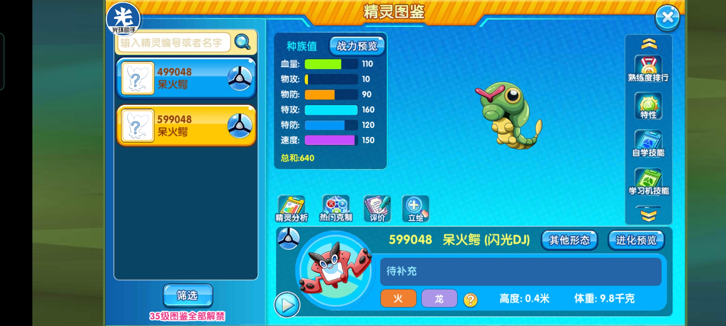 整体种族分布还是挺不错的,110的血量,再加120的特防,肉度虽然不是特别厚实,但也能抵御很多精灵攻击,不过就是物防90有些差,速度150可以说是目前平民宠物中少有的高速宠,但是怎么说呢,这个速度种族实际和面板还是有一定差距,搭配160的特攻虽然看起来不高,但是有特性加持,走输出手还是很舒服。
