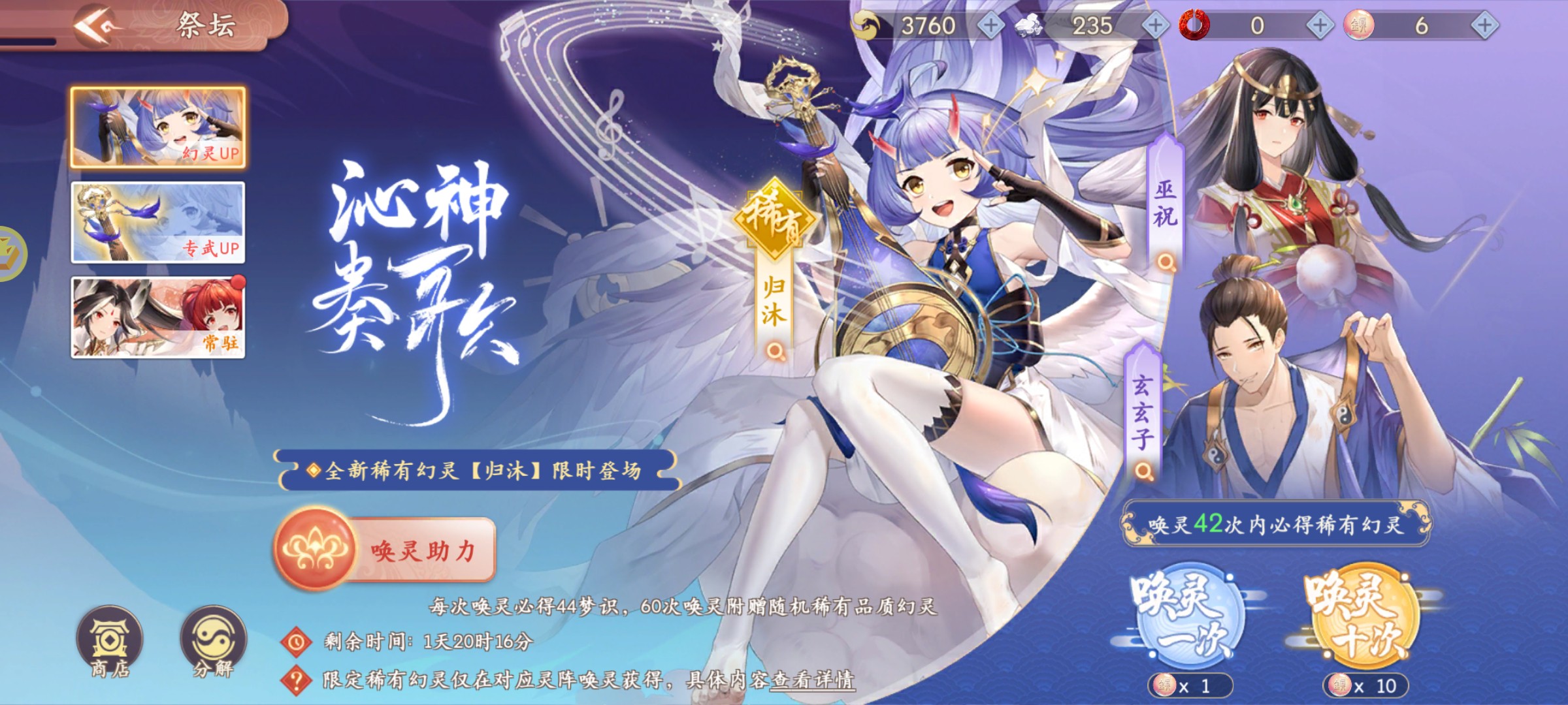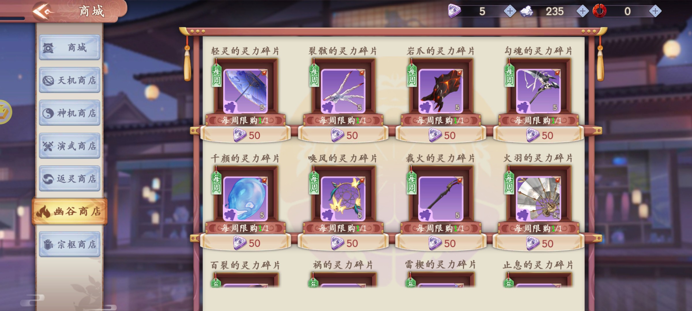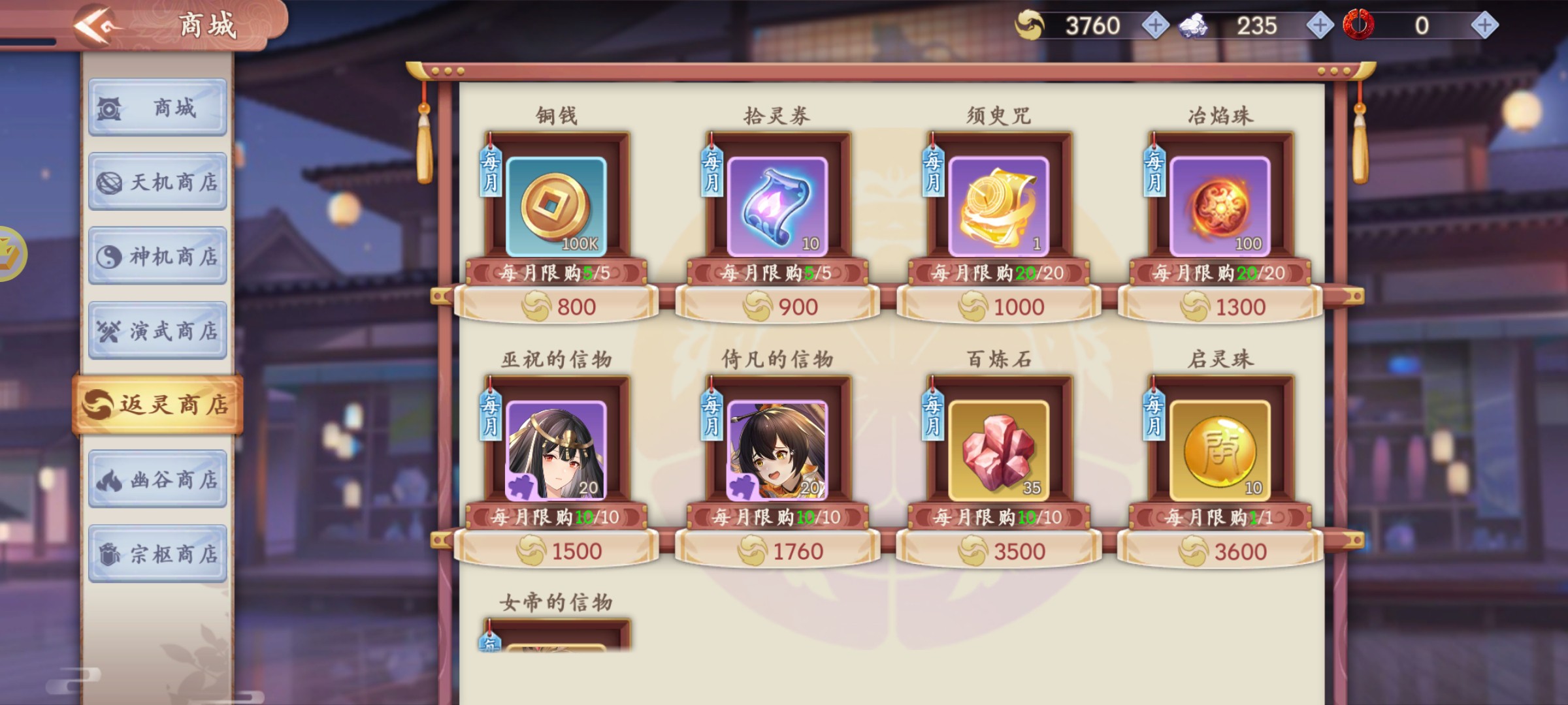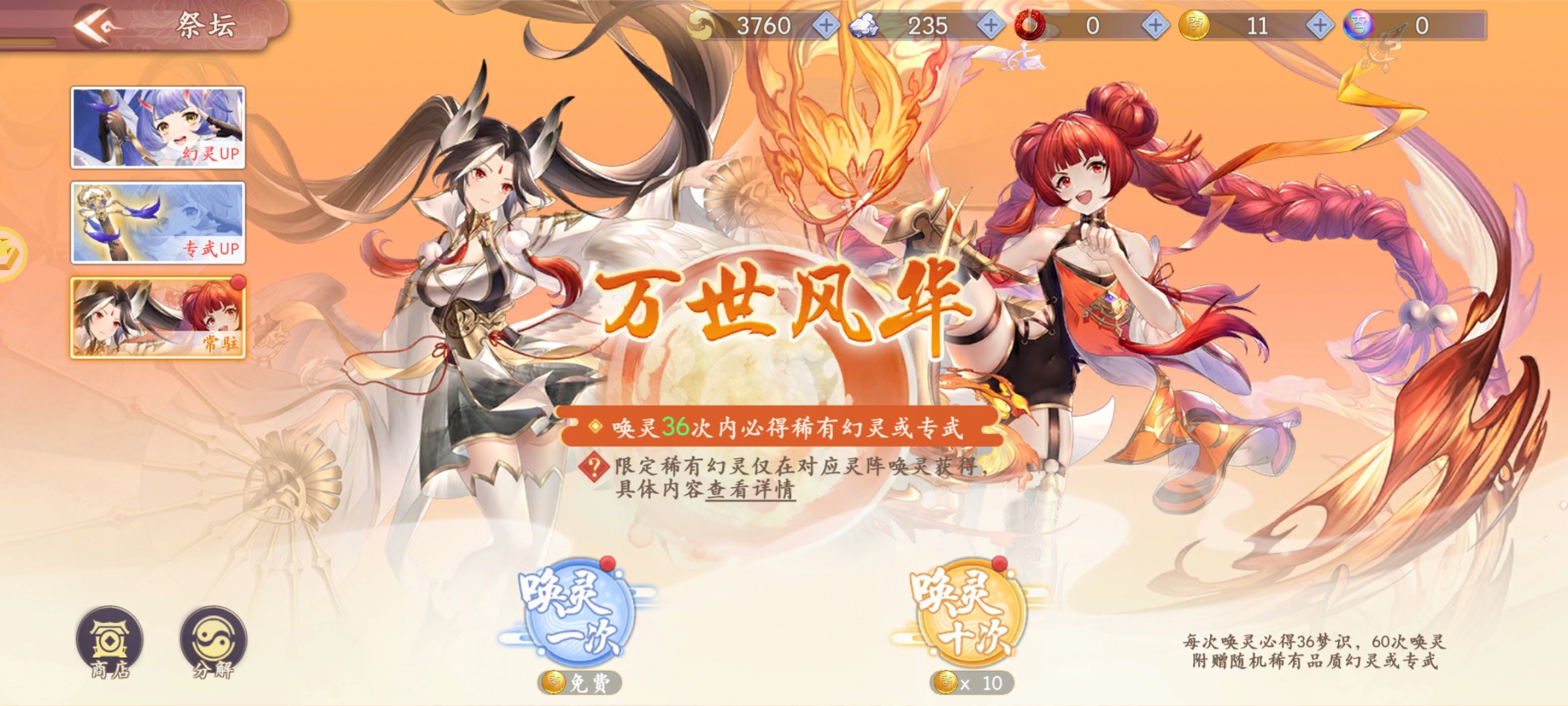 购买建议:拾灵券、个别信物(主C/好感度池子里面的幻灵)