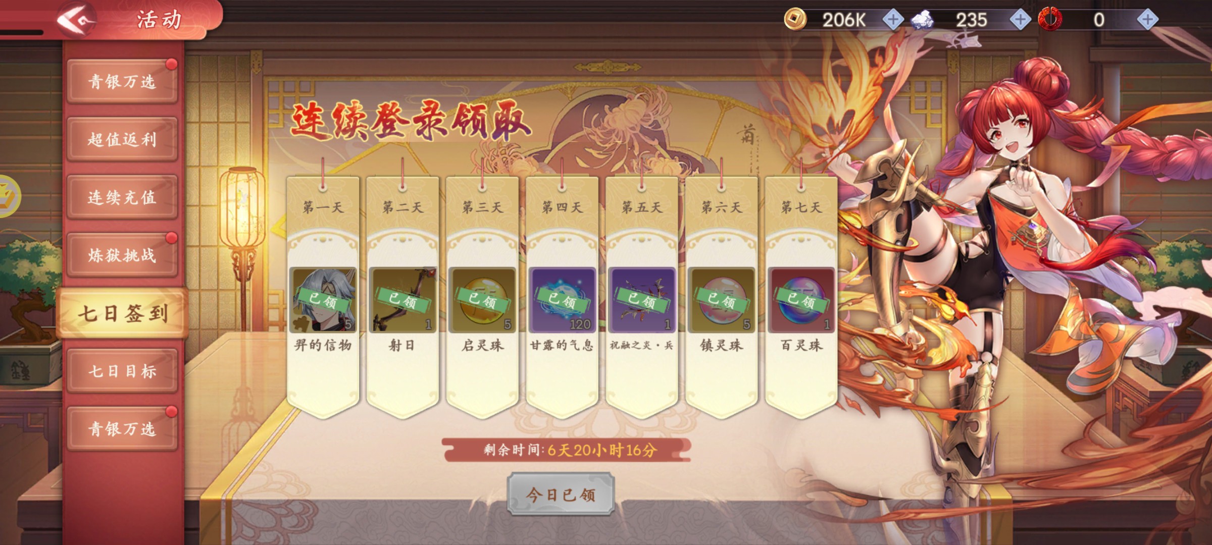完成七天乐签到送百灵珠 是抽十组十连选一 可以用来纠正自己的卡池趋势(尽可能往自己想要的阵容体系靠 或者拿丧河 女帝这类保值幻灵)