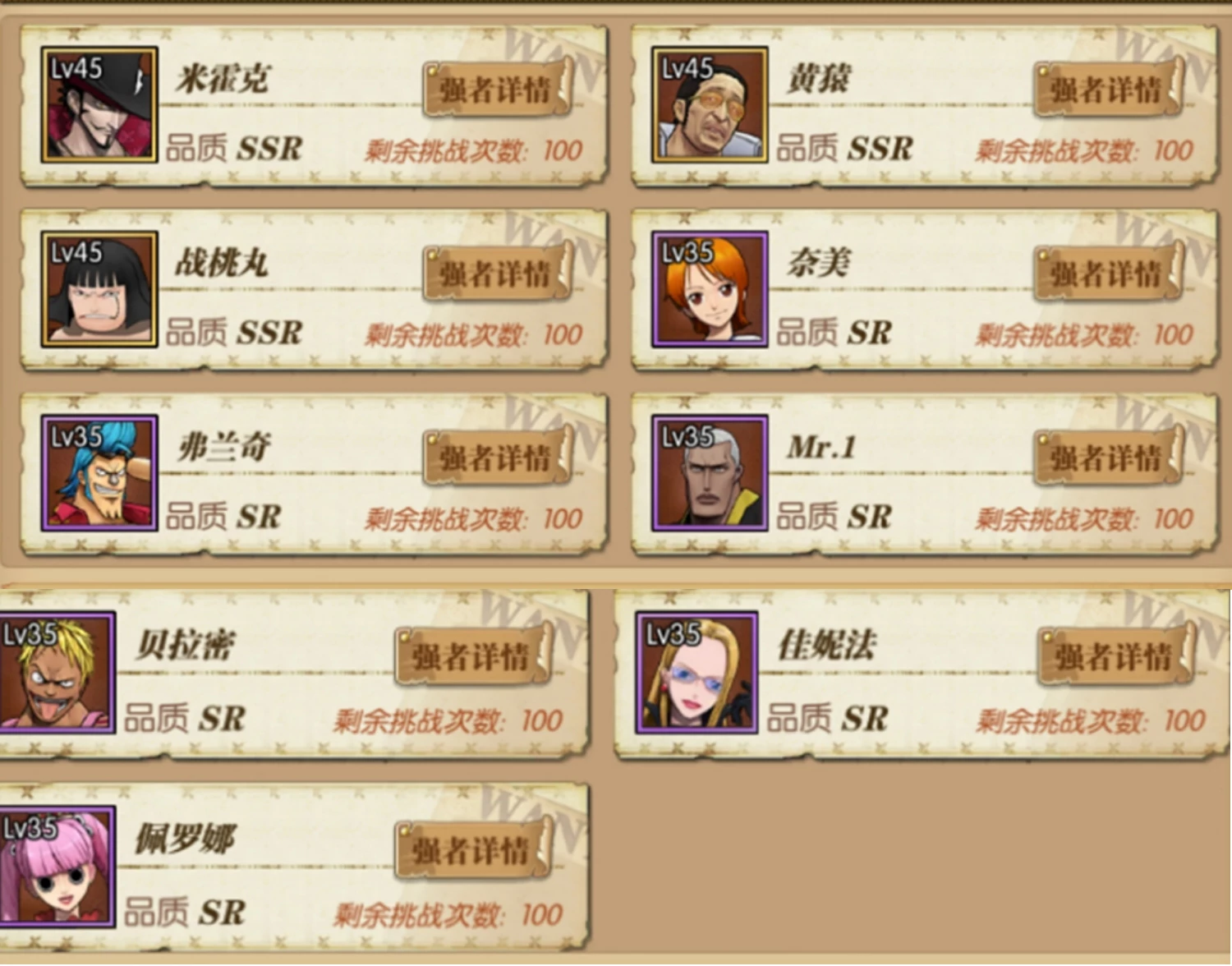 强者挑战不管是大佬还是平民都是非常有必要去肝的一个模式因为可以获得大量的经验卷以及自选人物的角色碎片。越是到后期经验卷是真的越来越难拿,升一级都要花费大量的经验卷真的是压力山大,如果选择氪经验礼包也是贵的要死,要想靠礼包把人物搞到一百级基本上也要花个2000块,每天能点一点就能省钱何乐而不为呢?