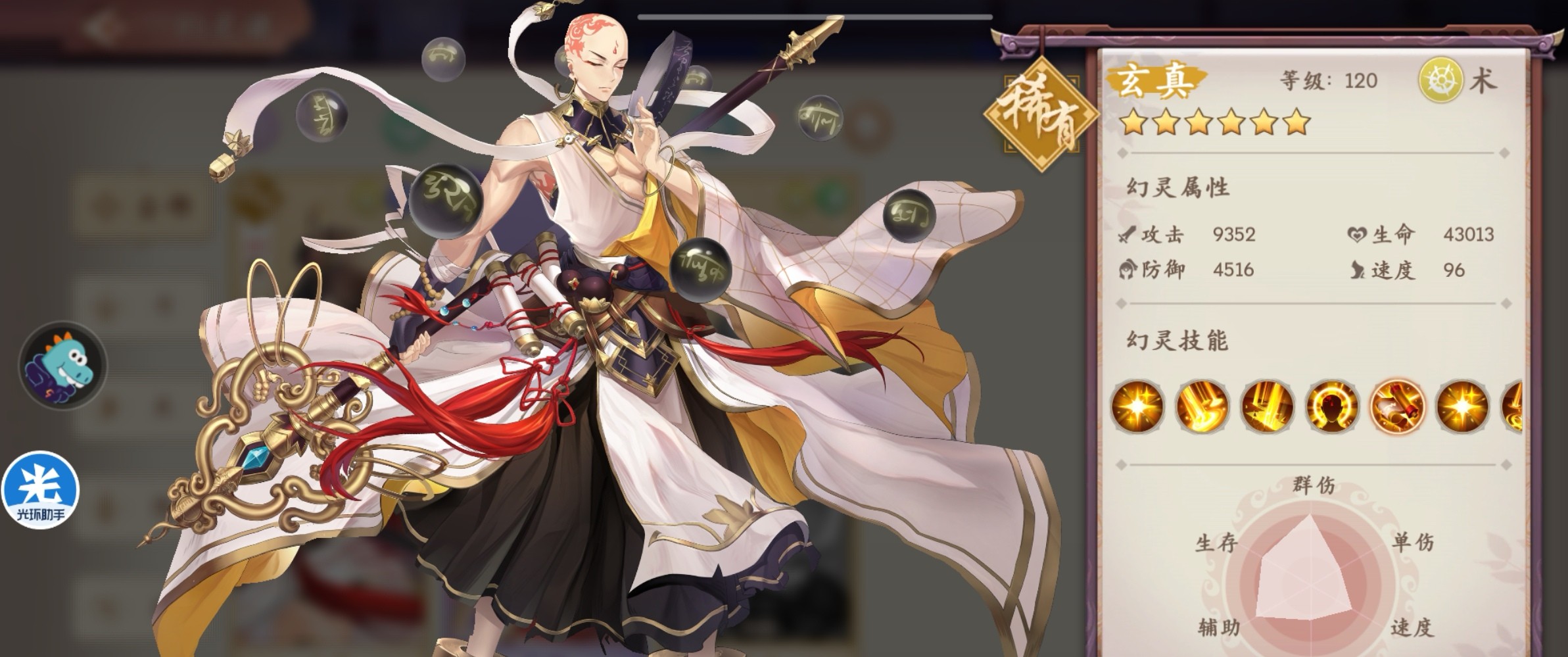 点评:高额的元素伤害和晕人能力,同时有高额的增伤能力,小技能一共可以放三个自动攻击的鬼脸,三个叠一起放在怪经过的路上,怪进来就死。推图非常强势。
