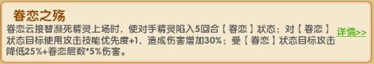 ③自身被【眷恋】状态精灵攻击降低25%+眷恋层数*5%伤害。