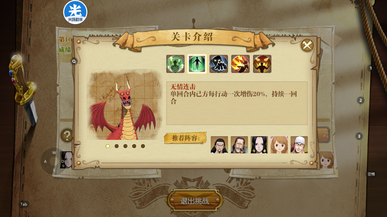 火龙阵容目前主要两个打法就是要么觉醒豹子,要么黑胡子吃人,当然黑胡子吃人的打法是最没有办法的办法,因为肯定拿不到高分了,或者上个小马哥等待最后一刻复活,如果能多次行动最好,这一关多次行动能叠伤害,所以霍金在这一关格外的香,如果霍金斯能一速行动3次无疑是给队友叠加了60%的伤害,这个配速尤其重要,上输出尽可能尾速或者倒数第二速度布林再给行动一次。