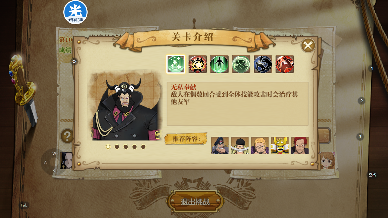 雷利、希流、白胡子、霍金斯、德雷克(希流控血,德雷克霍金斯配合输出)