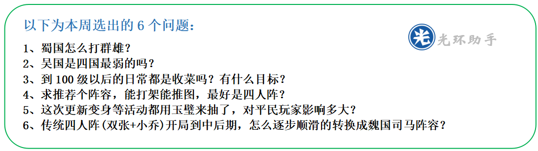 每周会收集5~10个热门问题,均由社区内经验丰富的达人或大神玩家来提供详细的分析,废话不多说进入主题