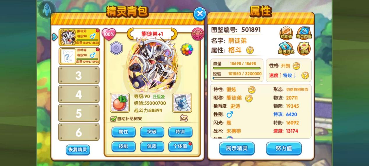 目前来说,熊徒弟的加速的话能去到1w3基本能快过大多数的防御宠和骚扰宠,所以为了能提前先手铺垫,加速性格是我个人认为最优的,但因为我的套路配招不是一般的强化输出打法所以性格方面可以多样化,大家可以根据自己的队伍进行调整,如你可以选择加防,加攻加速都可以,但不建议你们选减速性格,因为万一触发特性加速就很吃亏了。