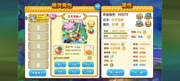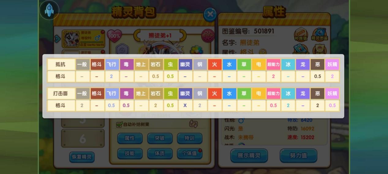 PS:这精灵会极巨化,但尽管有超级破势拳,但这精灵不是一个输出高的精灵所以破势拳的威力不高达不到武道熊师的强度。所以不推荐大家开。