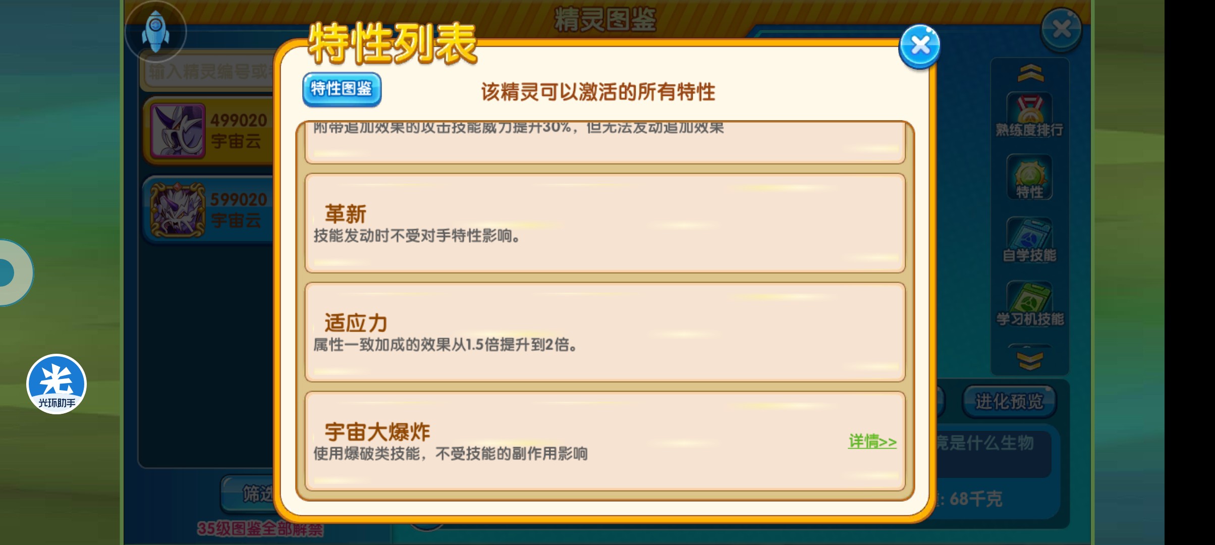 现在只能说两下大爆炸,再不走巨沼怪基本上反手被乘风破浪秒杀,就更不用说环境只会越来越差了,还比如在面对闪电鸟的时候,自己手握大爆炸,但还是没用,只要自己的血量处于半血,甚至是满血都有可能会被对方啄一下,然后自己就没了满血被秒,因为本身的速度线已经完全不足以支撑现在的游戏环境,因为现在基本上所有第一梯队的精灵,要么就是血量特别高,防御力特别高,伤害特别高,要么就是速度快,伤害高,但是宇宙云基本上是那种很尴尬的精灵,你说有伤害吧,伤害是有的,你说要有速度吧,速度138满配接近两万速度也不算慢,但是如果和当前版本这些T1精灵稍微的对比一下,基本上就会被比下去了,说了那么多,总之就一句话,宇宙云已经是时代的爆破残渣了,只能等以后版本更新,希望可以加强一波。