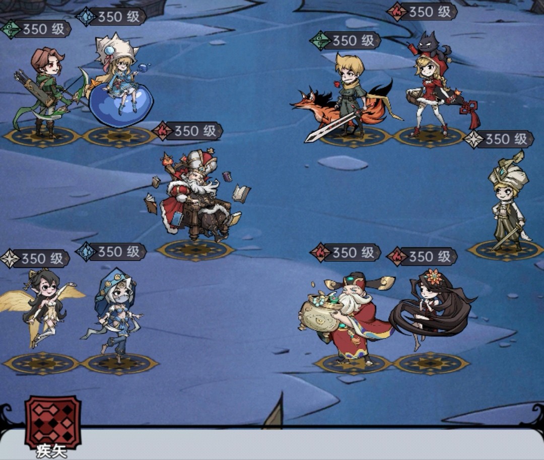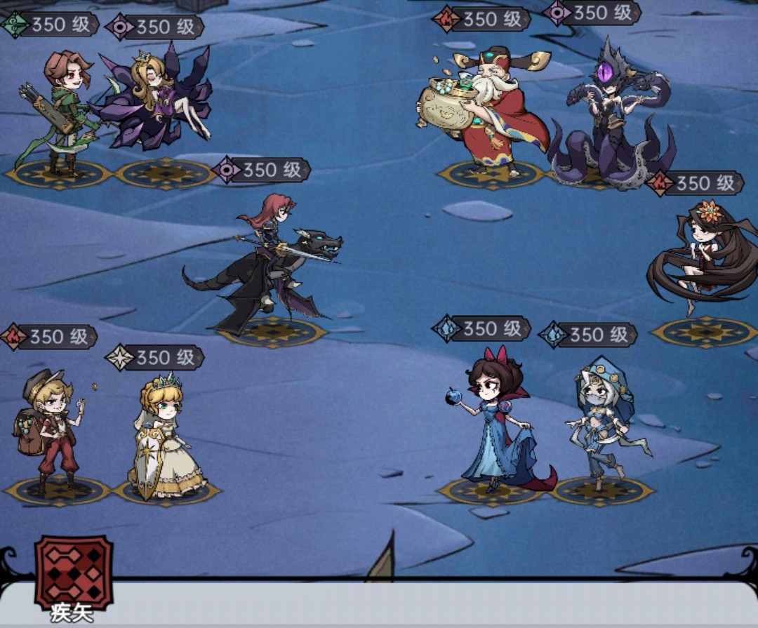 该关卡同样对面爆发更高,但前排后排都较为脆弱,所以我们采取双C续航流打法,温蒂技能稳定压血线,罗宾联动收割,主意公主对位黑桃承担爆发伤害,后排放坦度较高的海螺防止王后斩杀。
